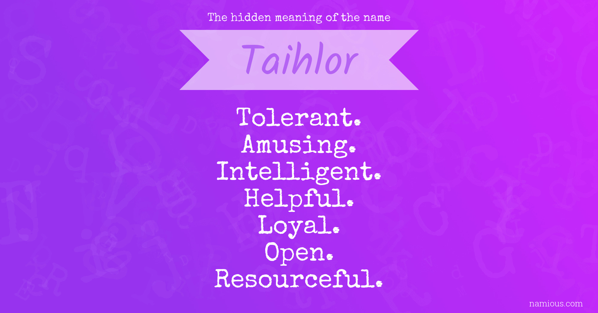 "Taihlor is a tolerant, amusing, intelligent, helpful, loyal, open and resourceful person."