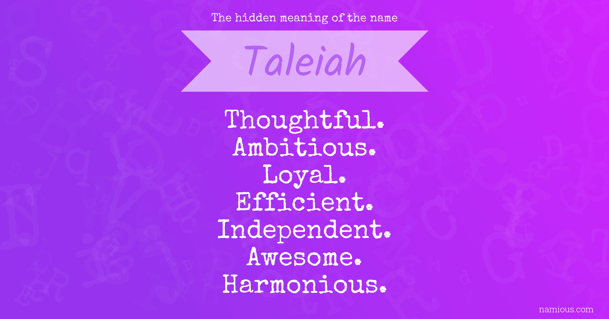 "Taleiah is a thoughtful, ambitious, loyal, efficient, independent, awesome and harmonious person."