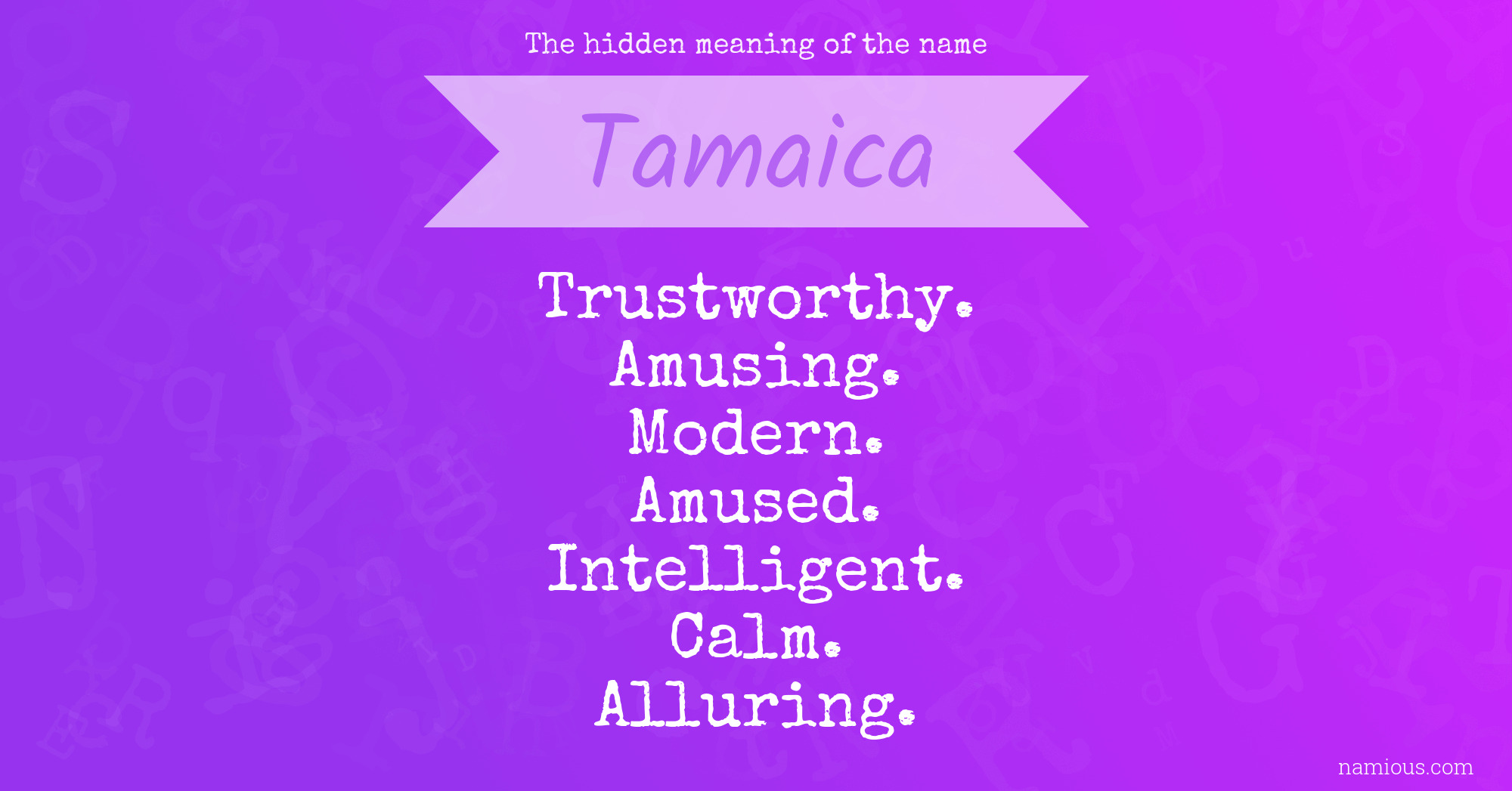"Tamaica is a trustworthy, amusing, modern, amused, intelligent, calm and alluring person."