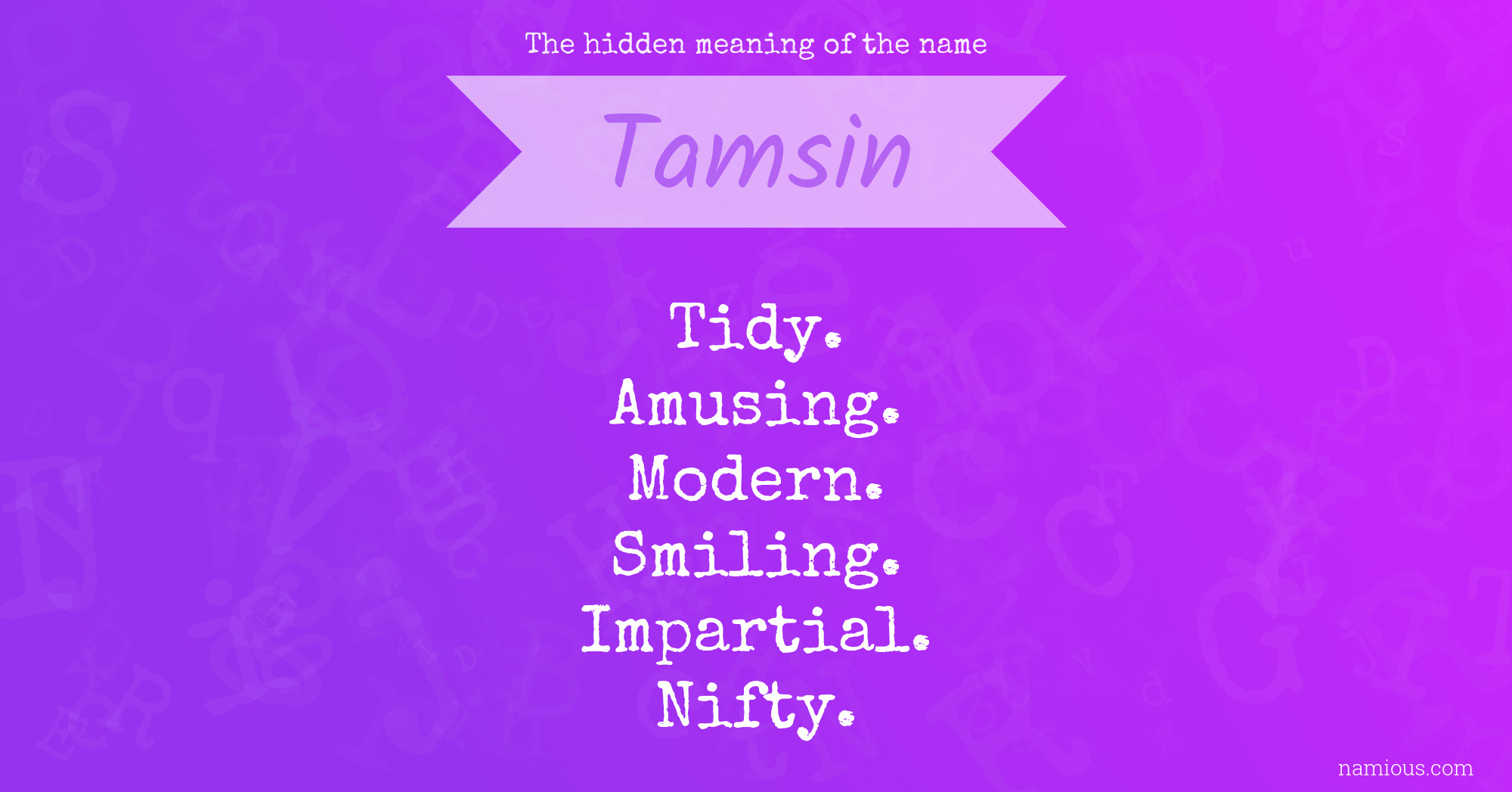 "Tamsin is a tidy, amusing, modern, smiling, impartial and nifty person."