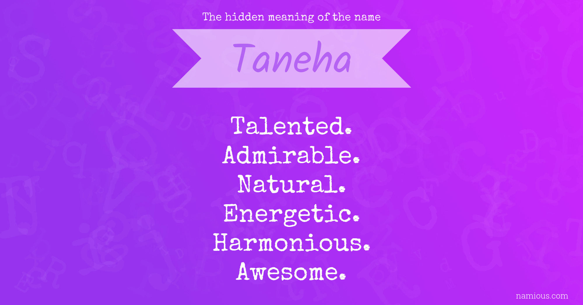 "Taneha is a talented, admirable, natural, energetic, harmonious and awesome person."
