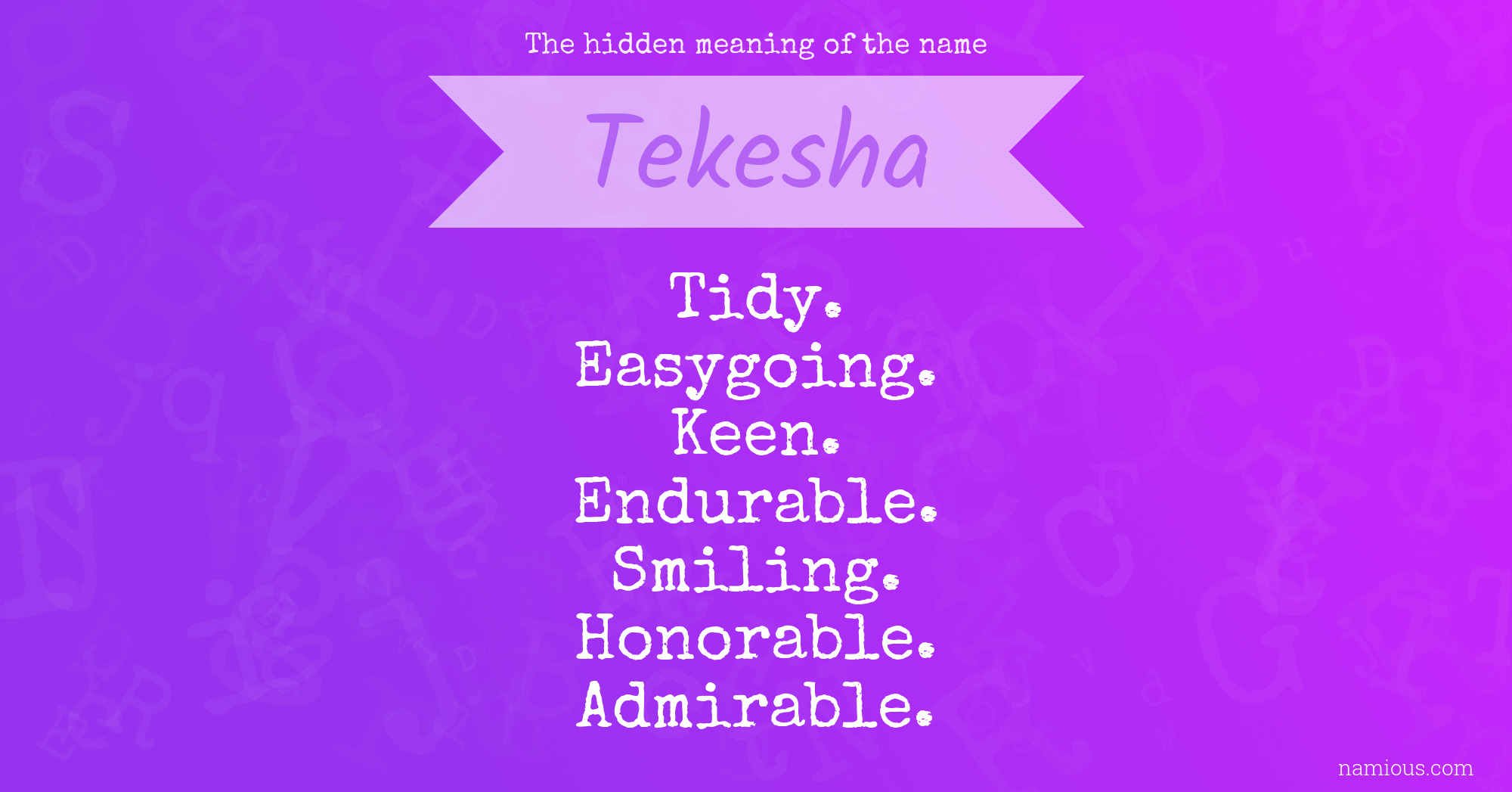"Tekesha is a tidy, easygoing, keen, endurable, smiling, honorable and admirable person."