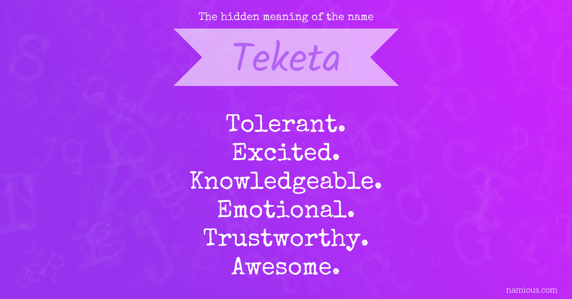 "Teketa is a tolerant, excited, knowledgeable, emotional, trustworthy and awesome person."