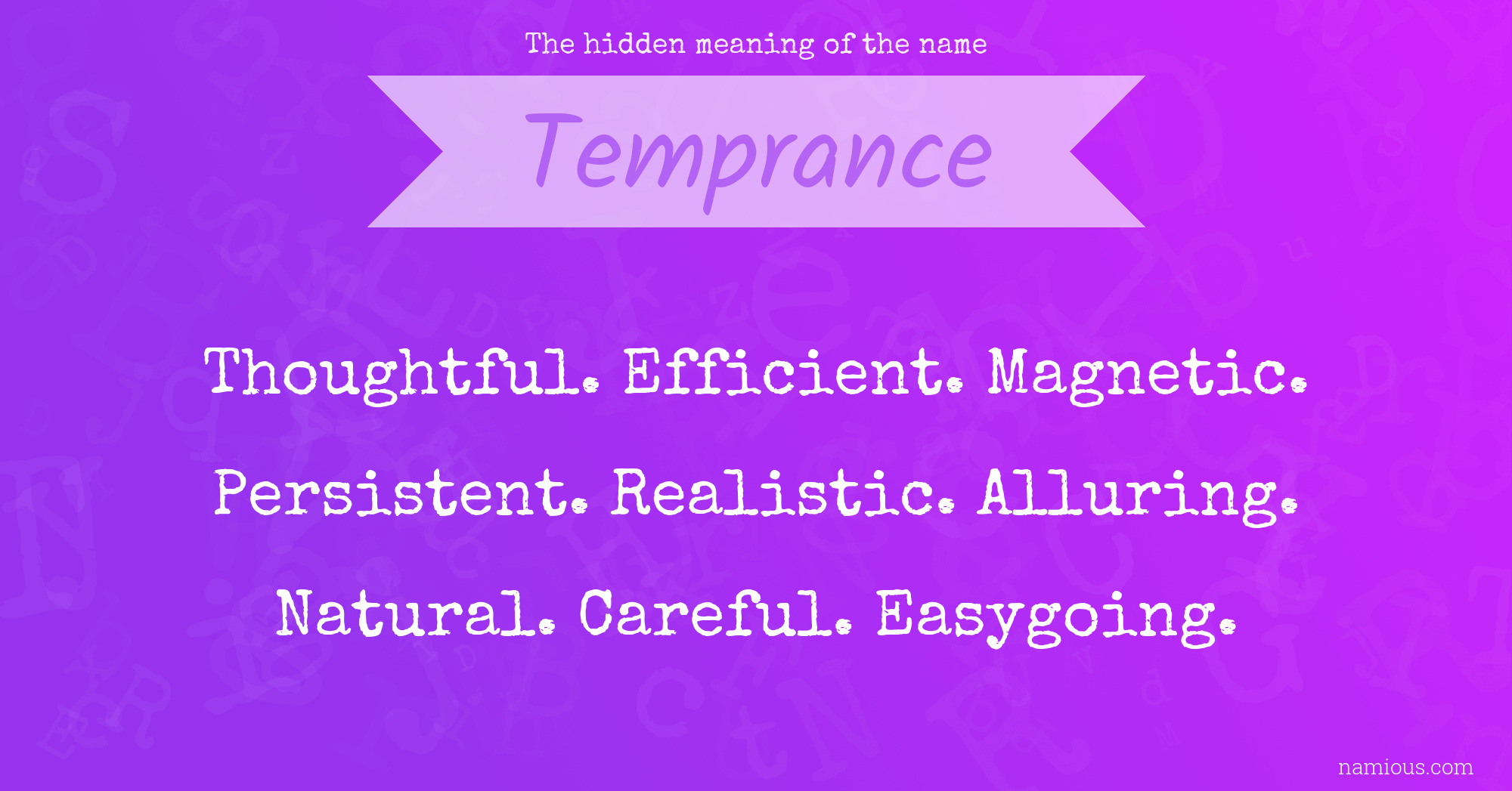 "Temprance is a thoughtful, efficient, magnetic, persistent, realistic, alluring, natural, careful and easygoing person."