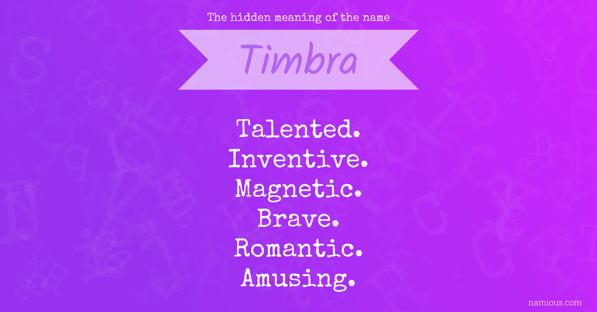 "Timbra is a talented, inventive, magnetic, brave, romantic and amusing person."