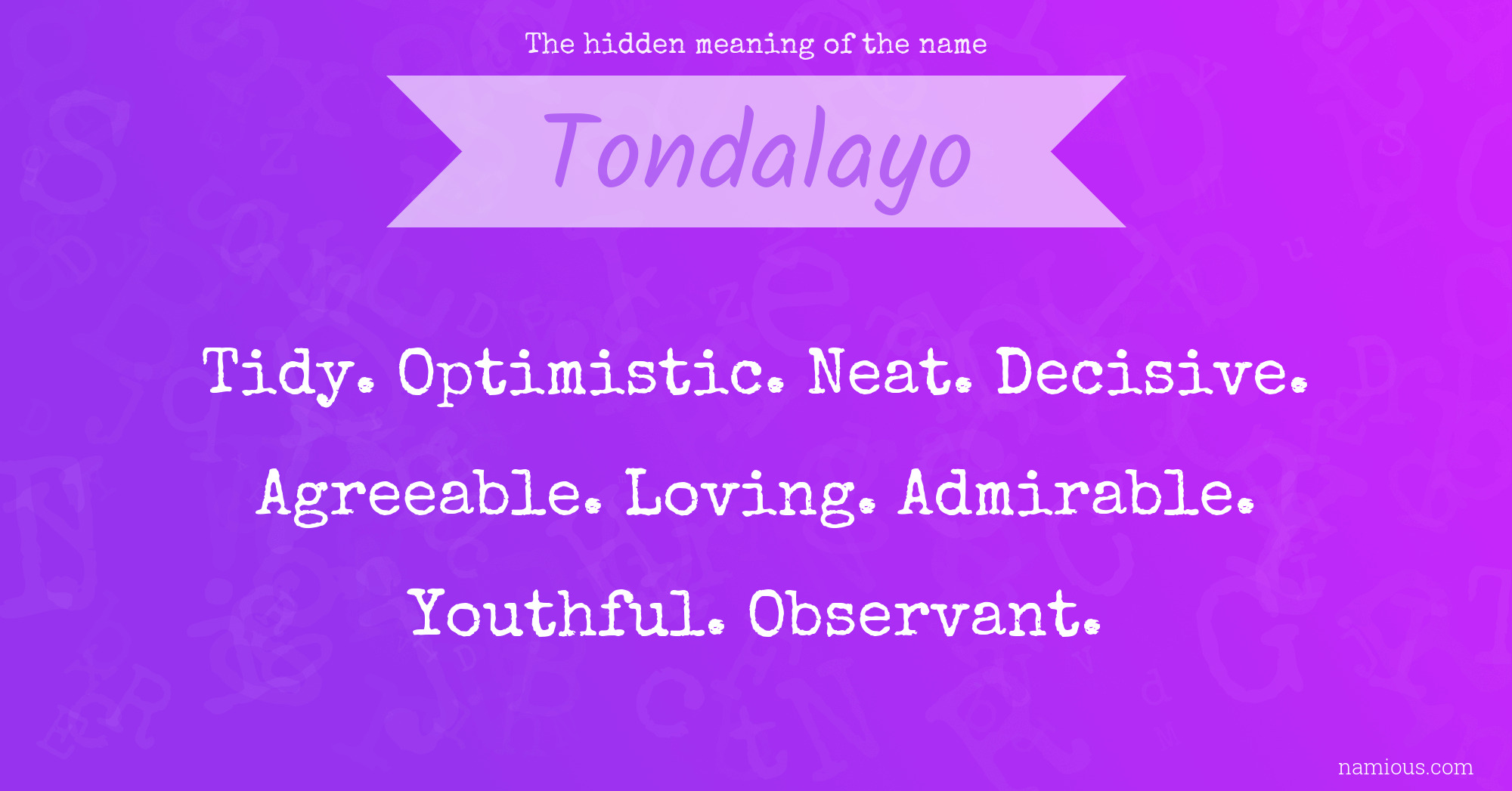 "Tondalayo is a tidy, optimistic, neat, decisive, agreeable, loving, admirable, youthful and observant person."