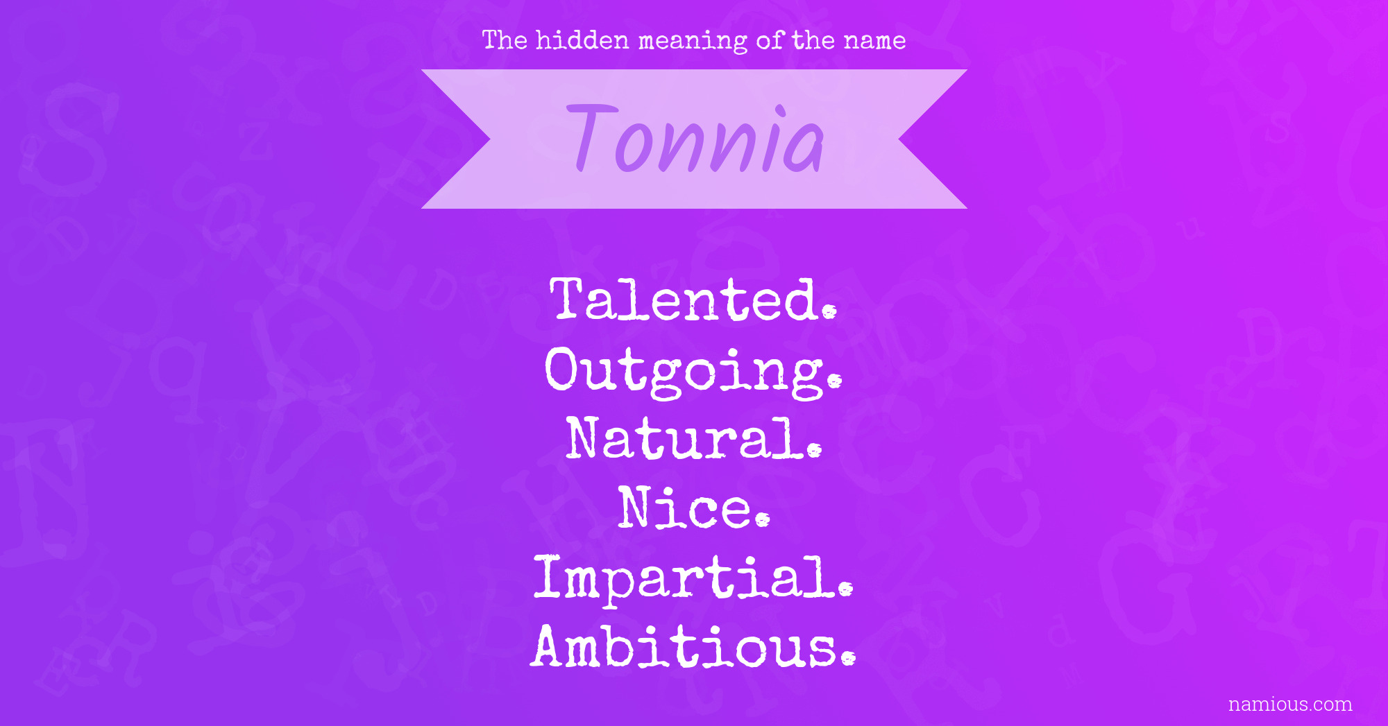 "Tonnia is a talented, outgoing, natural, nice, impartial and ambitious person."