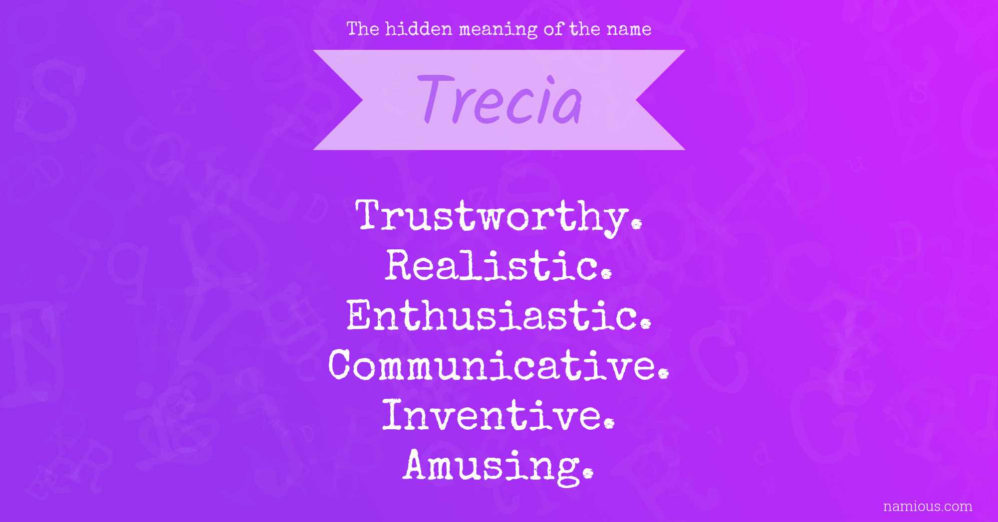 "Trecia is a trustworthy, realistic, enthusiastic, communicative, inventive and amusing person."