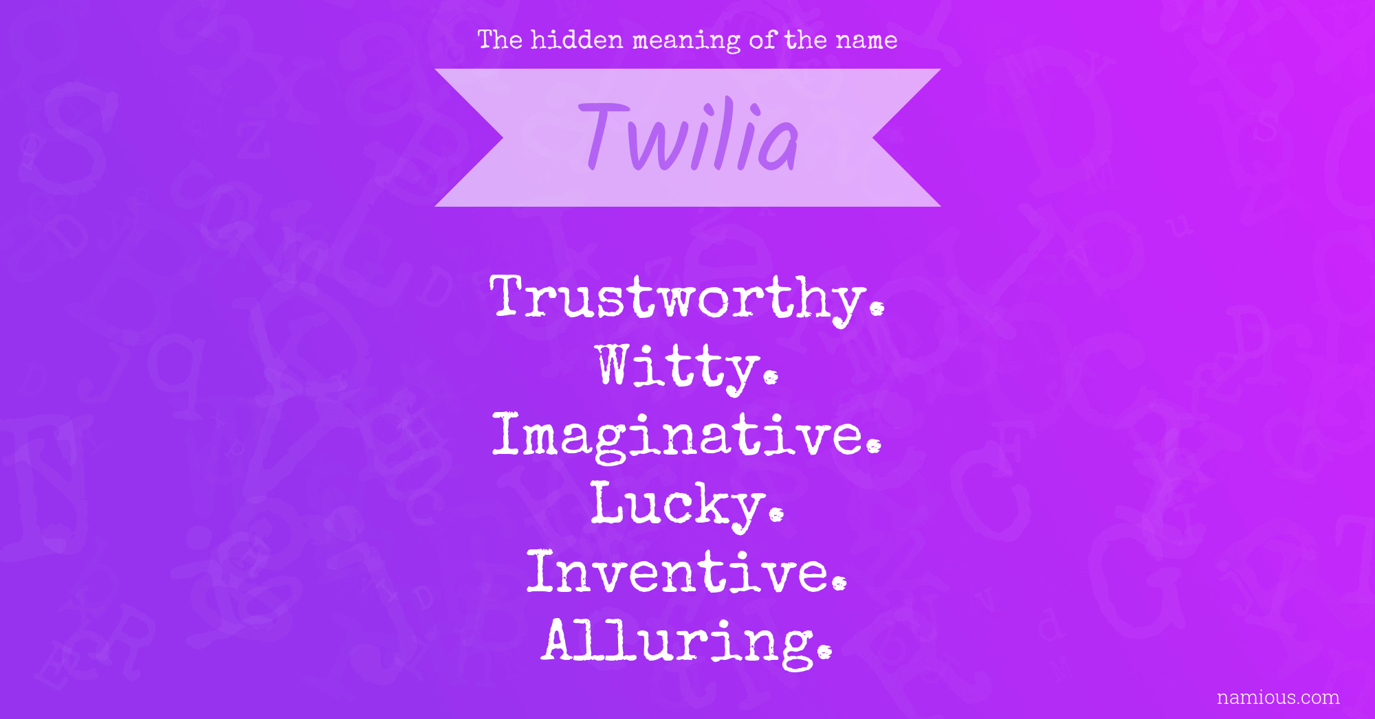"Twilia is a trustworthy, witty, imaginative, lucky, inventive and alluring person."