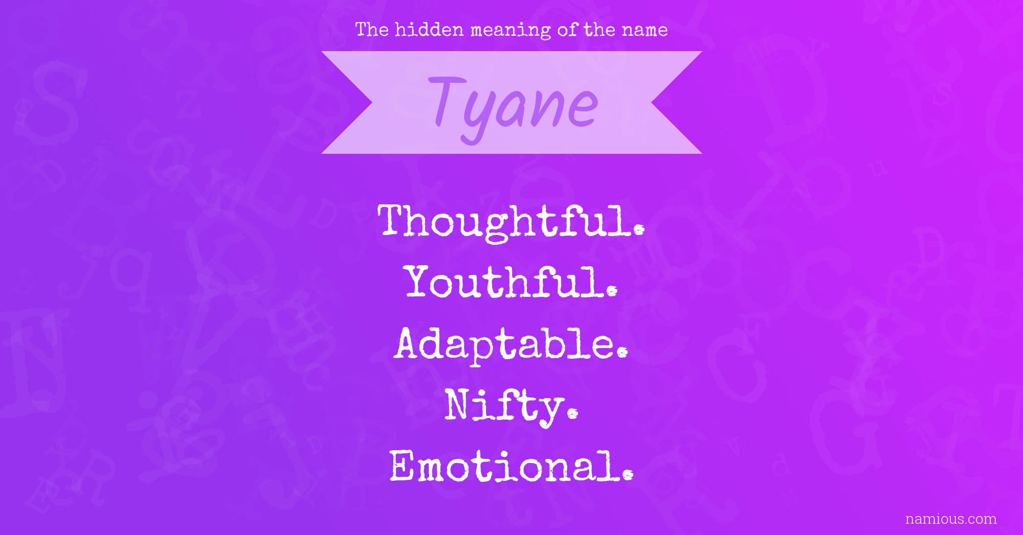 "Tyane is a thoughtful, youthful, adaptable, nifty and emotional person."