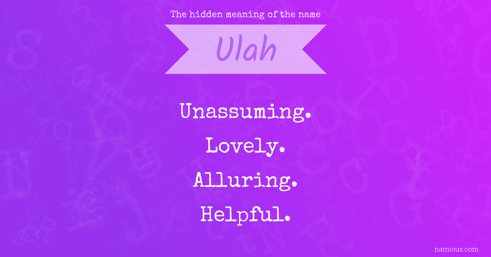 "Ulah is an unassuming, lovely, alluring and helpful person."