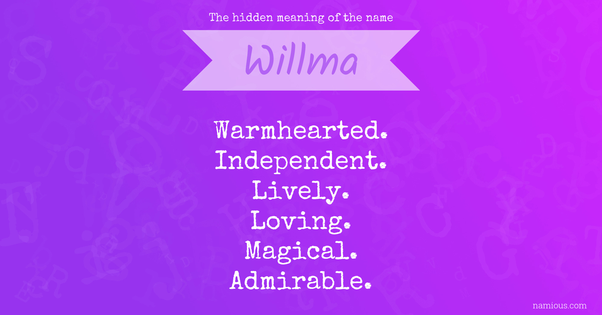 "Willma is a warmhearted, independent, lively, loving, magical and admirable person."