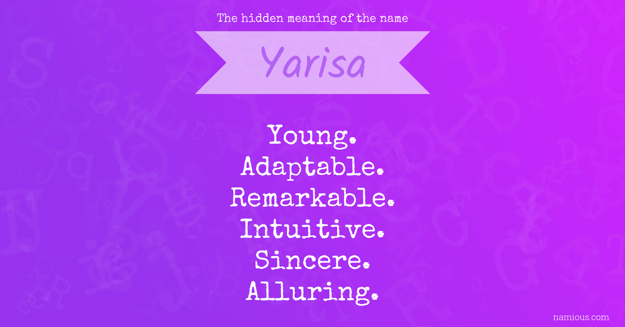 "Yarisa is a young, adaptable, remarkable, intuitive, sincere and alluring person."