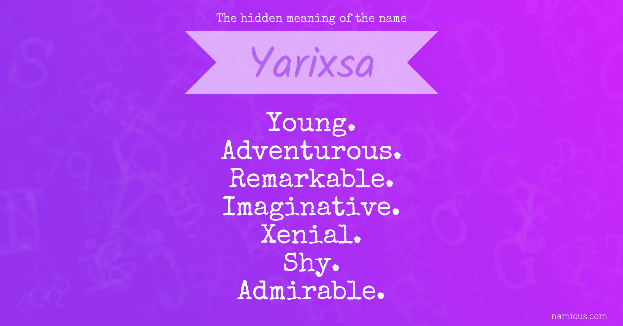 "Yarixsa is a young, adventurous, remarkable, imaginative, xenial, shy and admirable person."