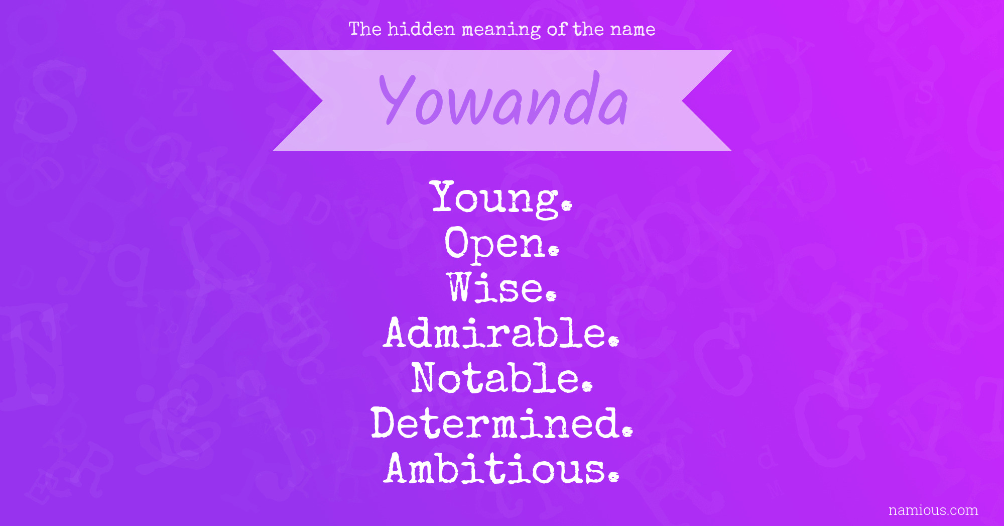 "Yowanda is a young, open, wise, admirable, notable, determined and ambitious person."