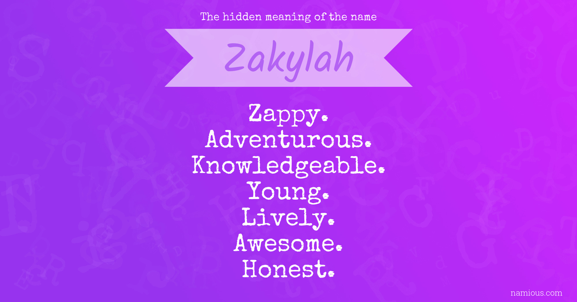 "Zakylah is a zappy, adventurous, knowledgeable, young, lively, awesome and honest person."