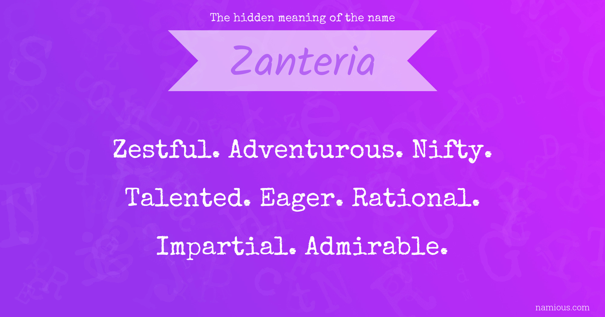 "Zanteria is a zestful, adventurous, nifty, talented, eager, rational, impartial and admirable person."