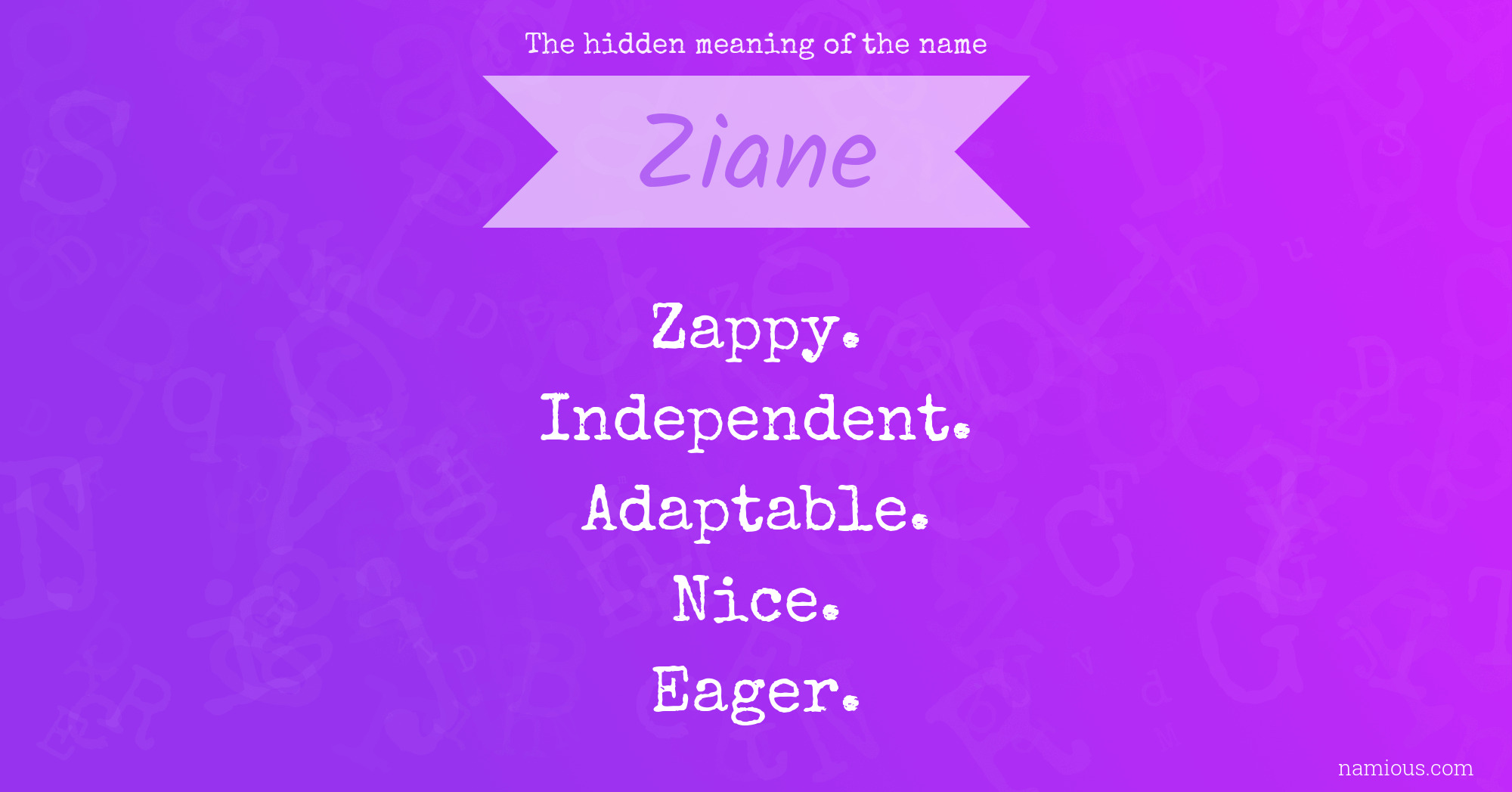 "Ziane is a zappy, independent, adaptable, nice and eager person."