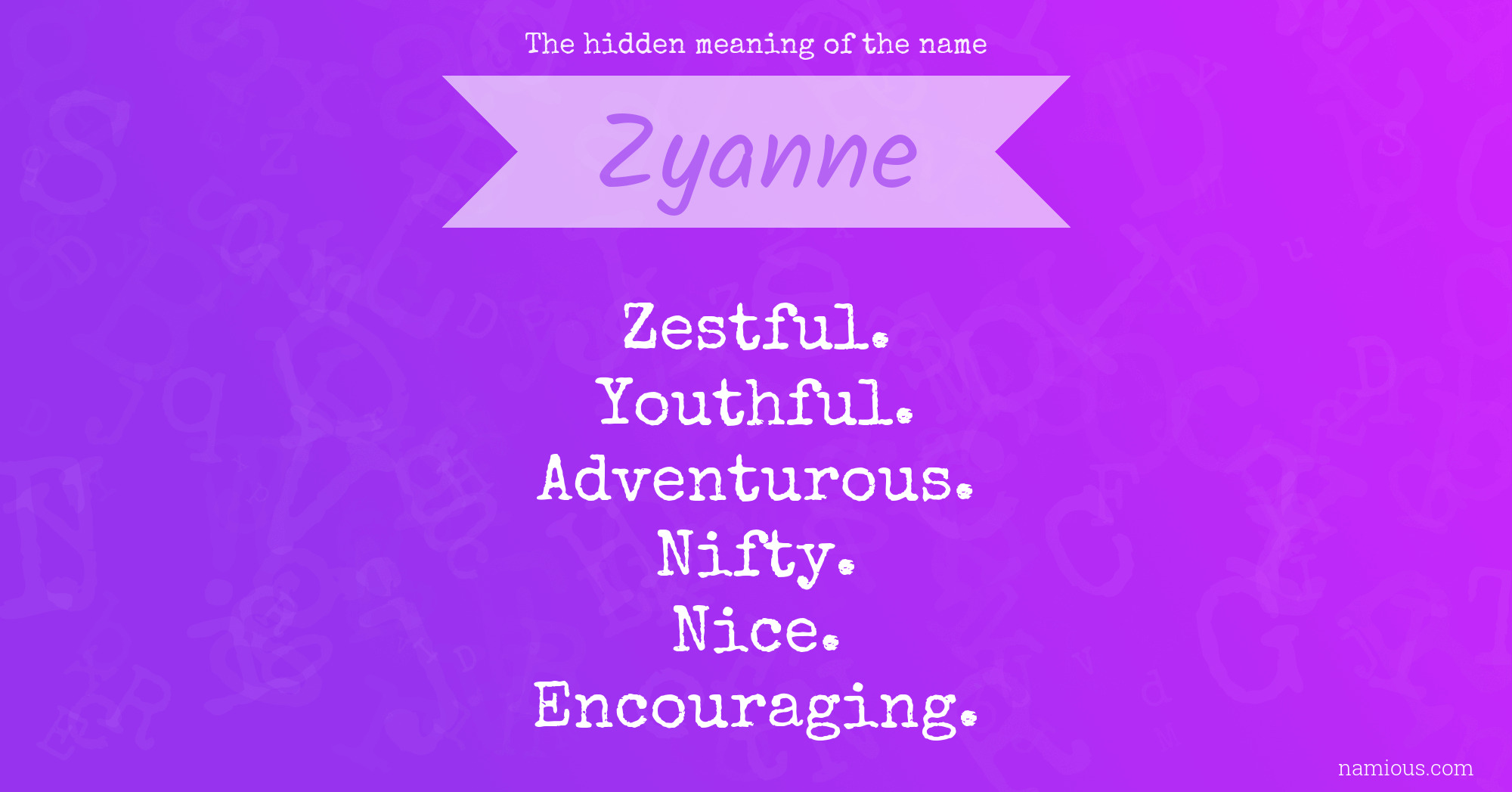 "Zyanne is a zestful, youthful, adventurous, nifty, nice and encouraging person."