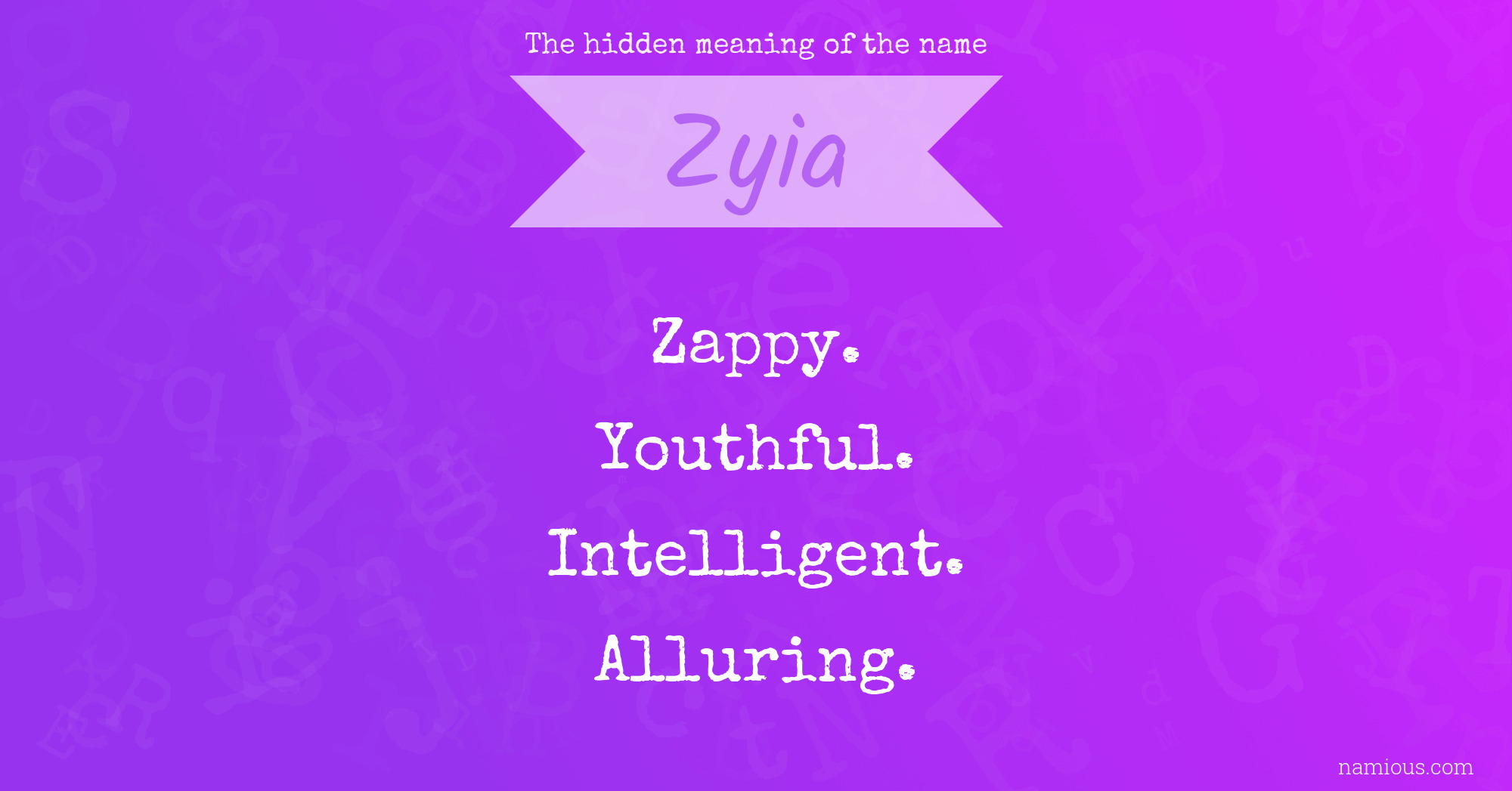 "Zyia is a zappy, youthful, intelligent and alluring person."