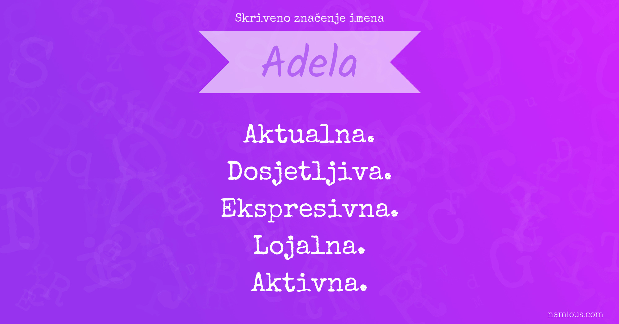 "Adela je aktualna, dosjetljiva, ekspresivna, lojalna i aktivna osoba."