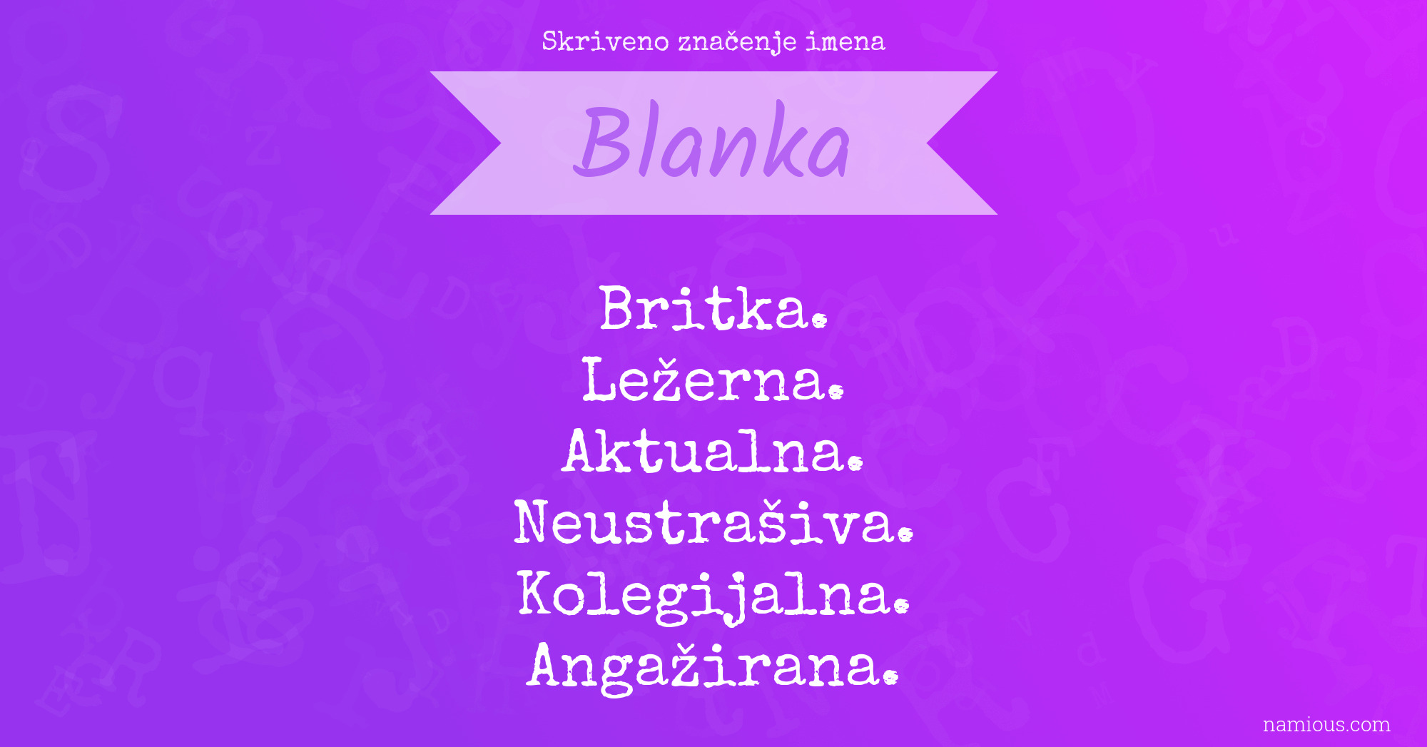 "Blanka je britka, ležerna, aktualna, neustrašiva, kolegijalna i angažirana osoba."