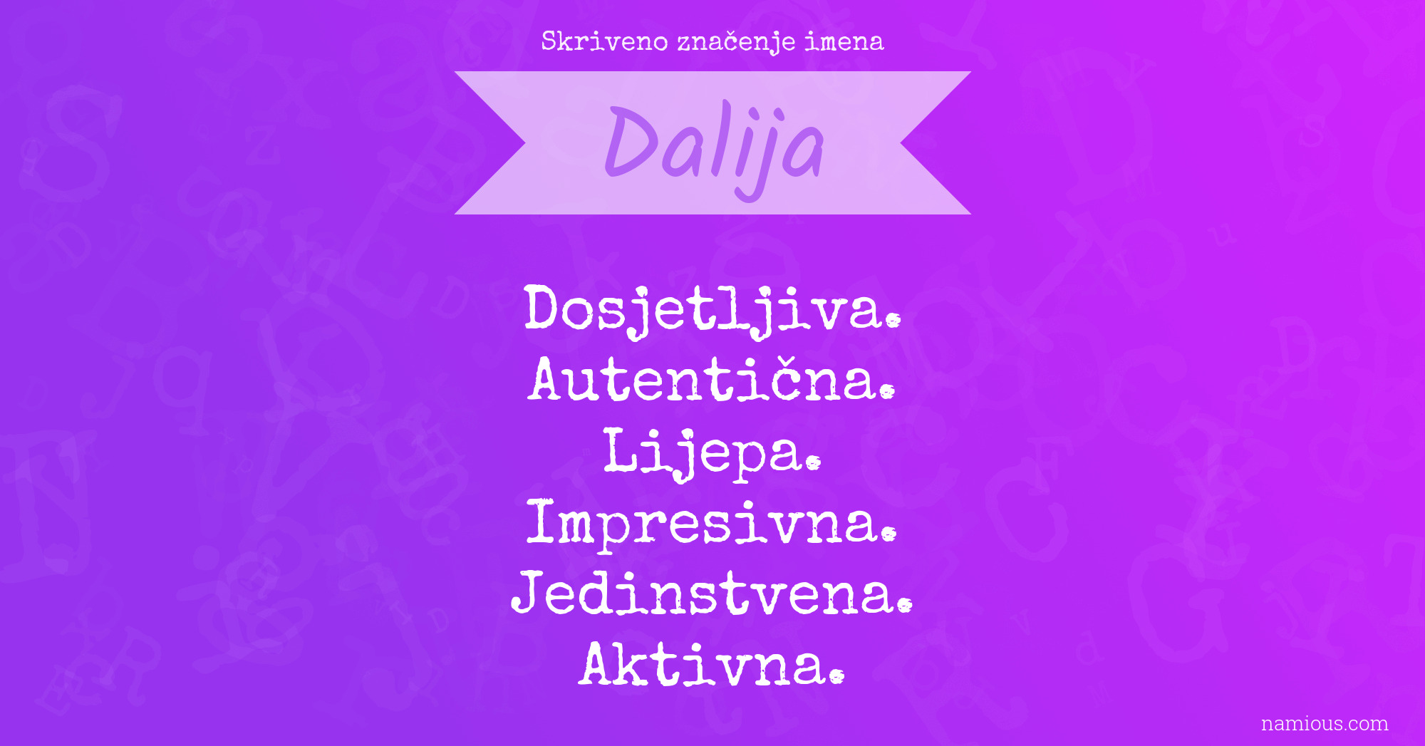 "Dalija je dosjetljiva, autentična, lijepa, impresivna, jedinstvena i aktivna osoba."