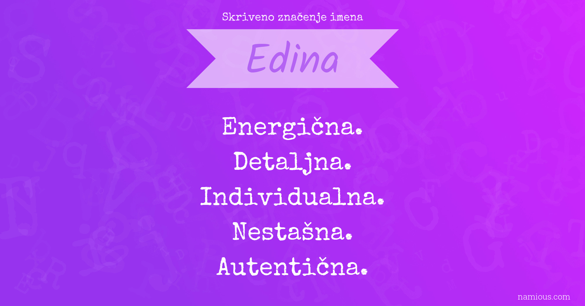 "Edina je energična, detaljna, individualna, nestašna i autentična osoba."