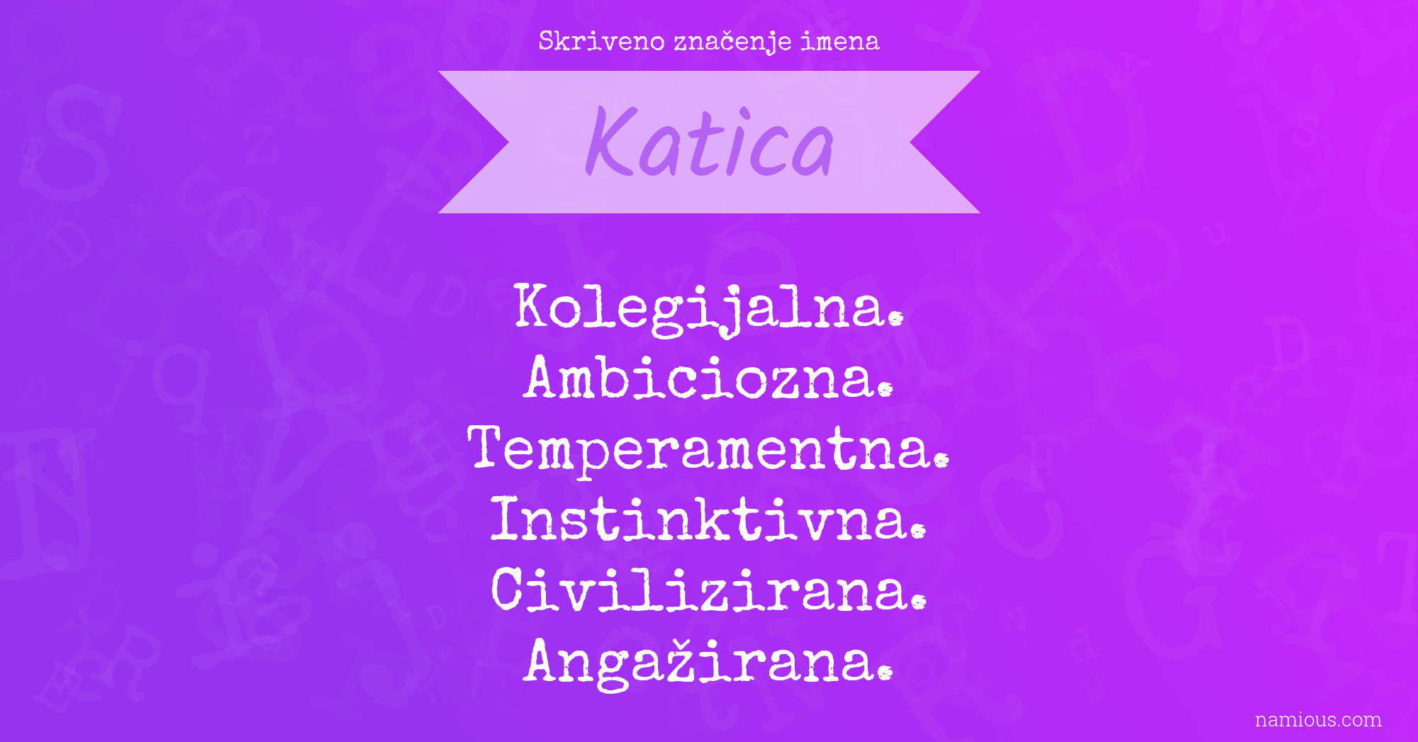 "Katica je kolegijalna, ambiciozna, temperamentna, instinktivna, civilizirana i angažirana osoba."