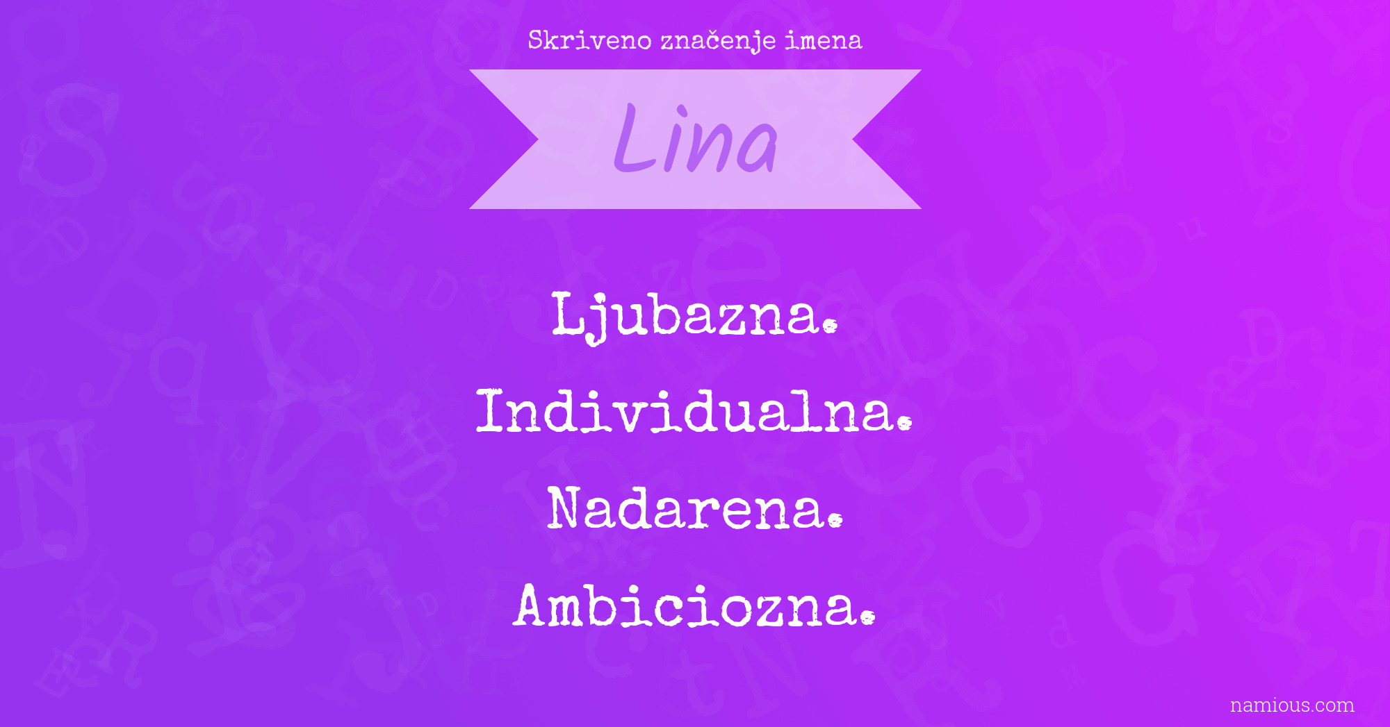 "Lina je ljubazna, individualna, nadarena i ambiciozna osoba."