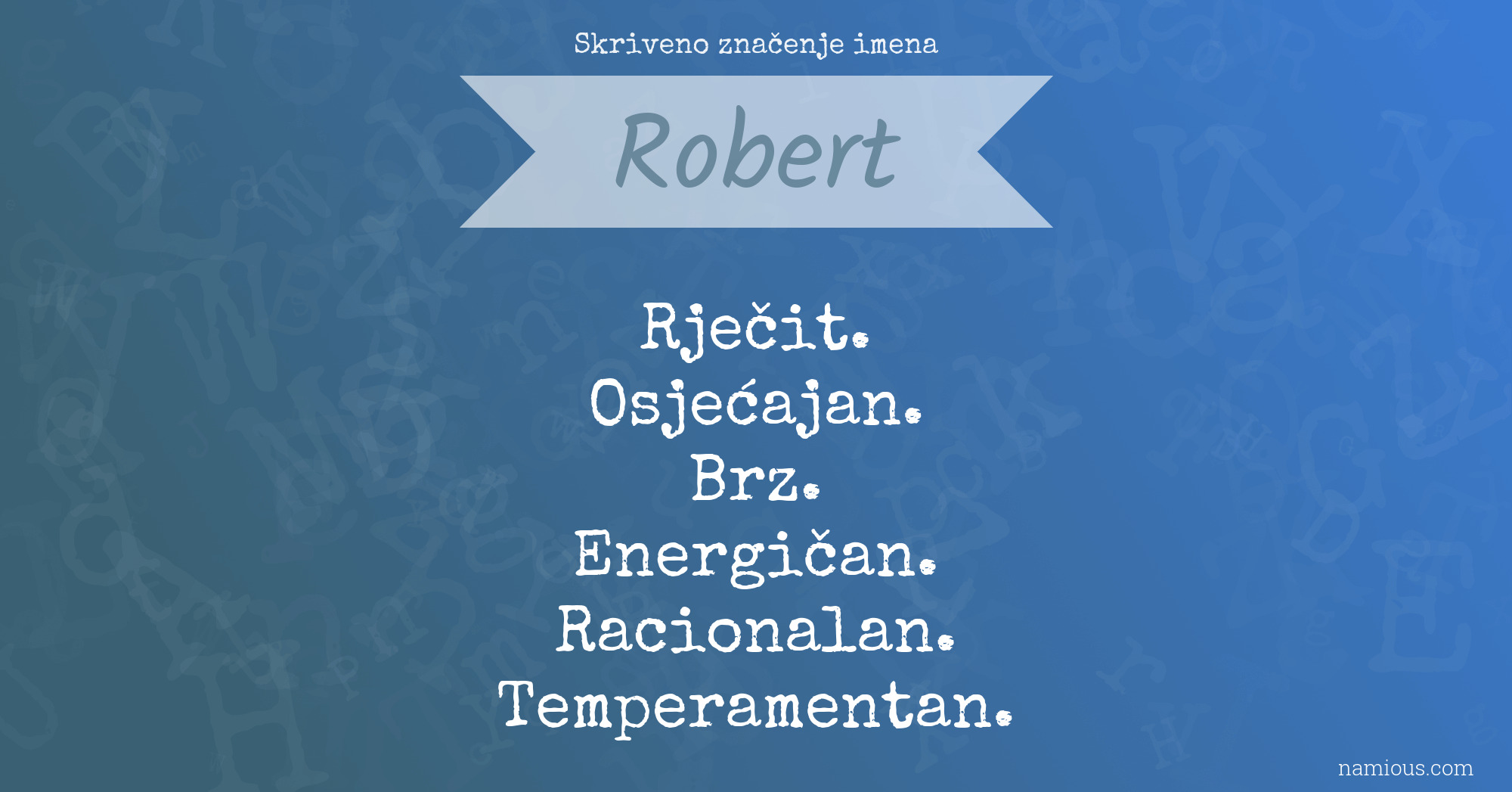 "Robert je rječit, osjećajan, brz, energičan, racionalan i temperamentan."