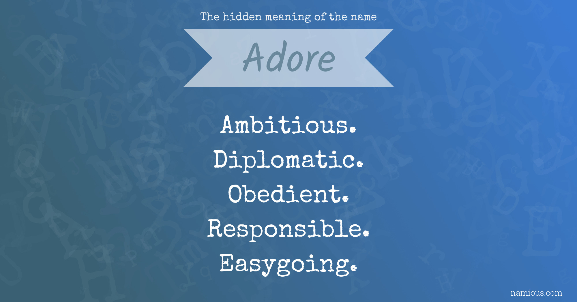 "Adore is an ambitious, diplomatic, obedient, responsible and easygoing person."