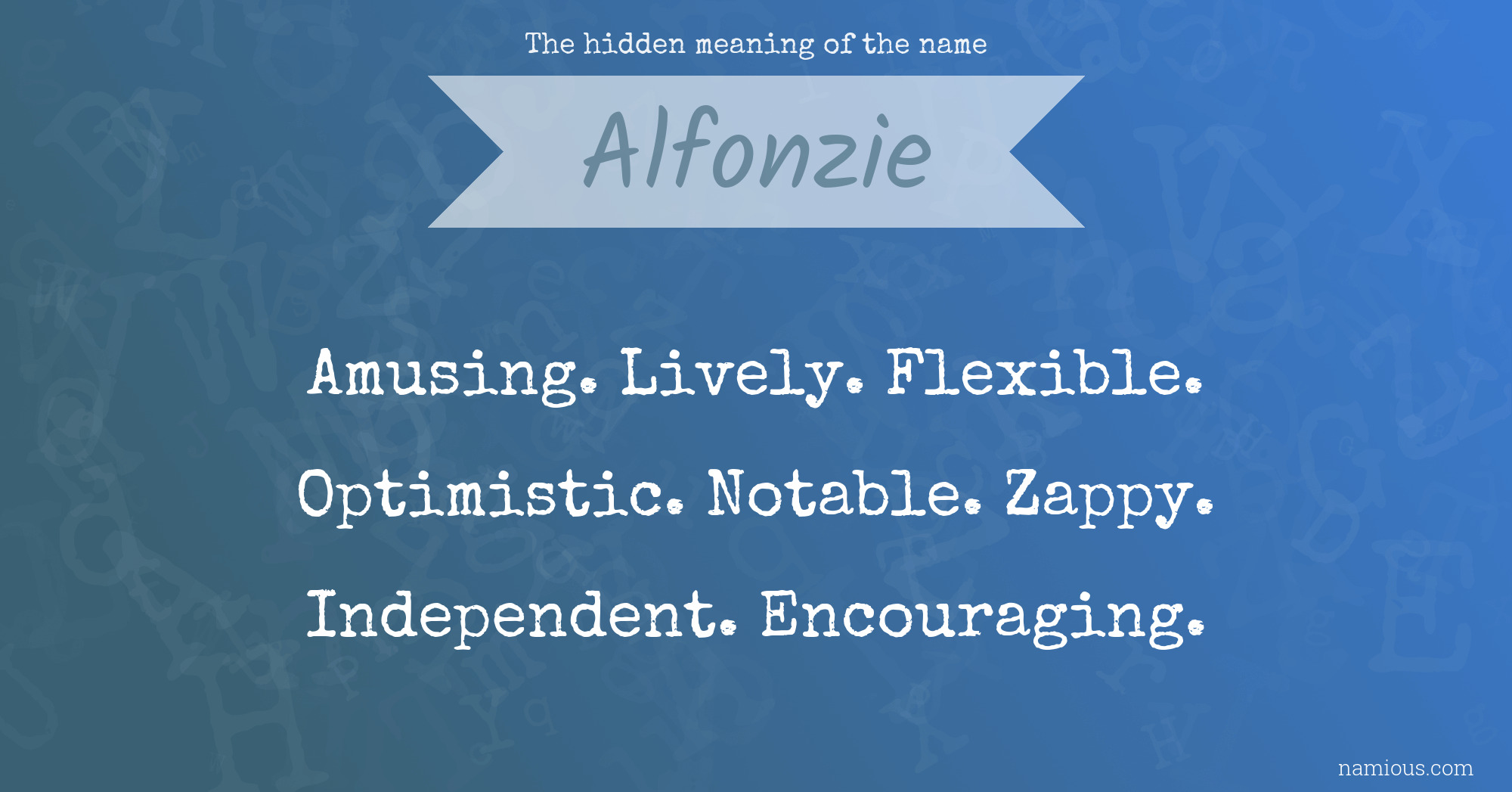 "Alfonzie is an amusing, lively, flexible, optimistic, notable, zappy, independent and encouraging person."