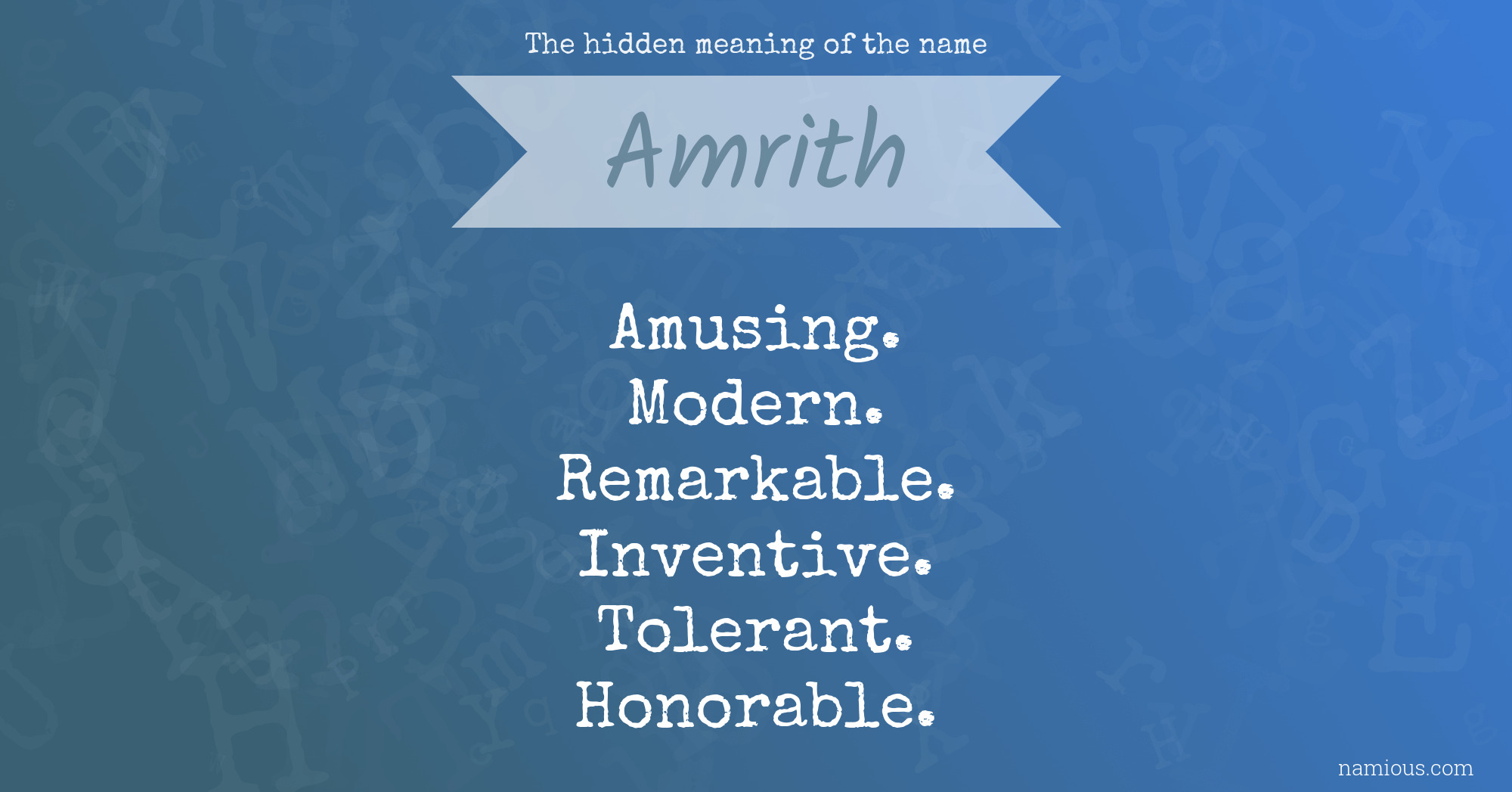 "Amrith is an amusing, modern, remarkable, inventive, tolerant and honorable person."