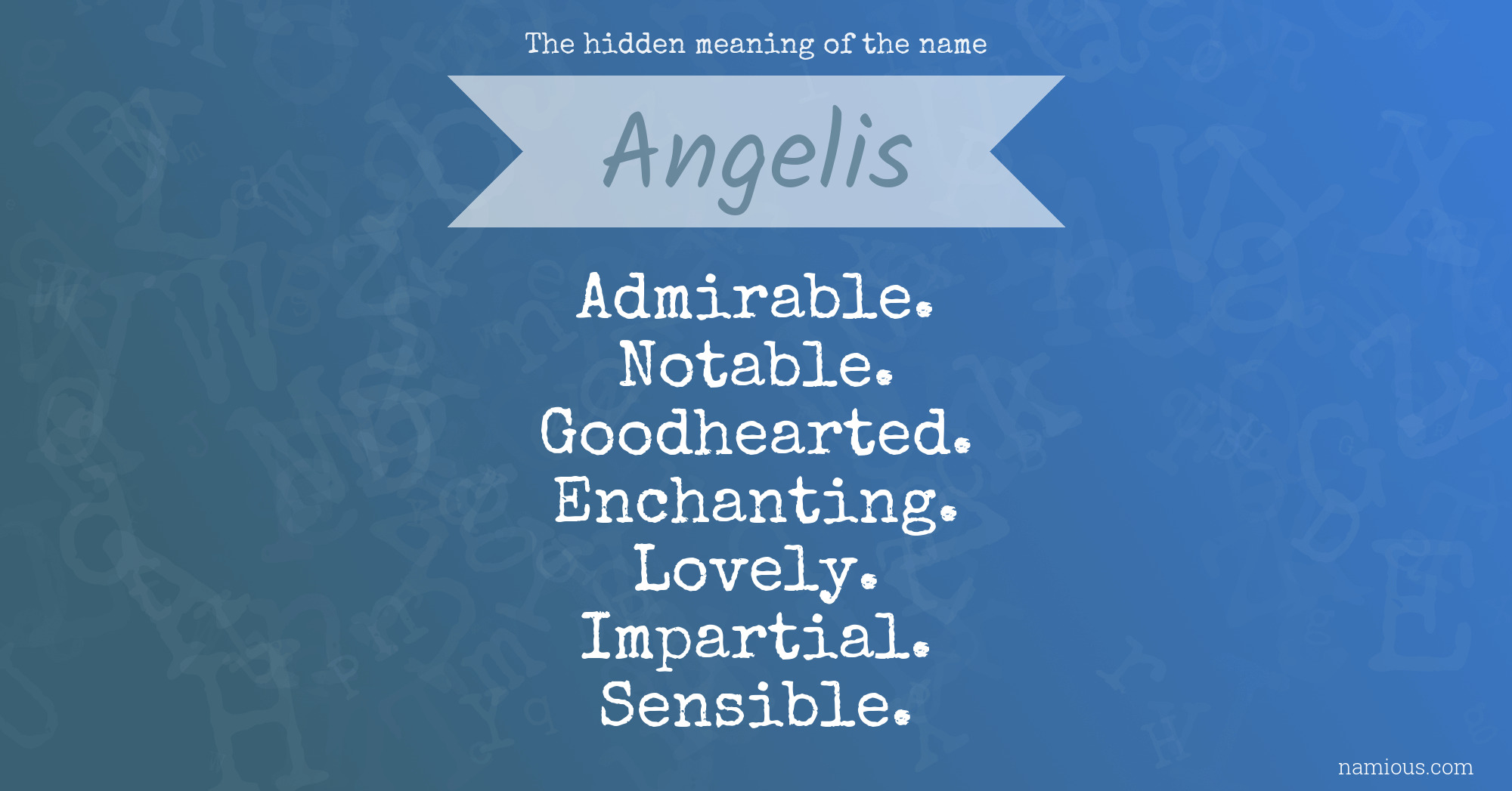 "Angelis is an admirable, notable, goodhearted, enchanting, lovely, impartial and sensible person."