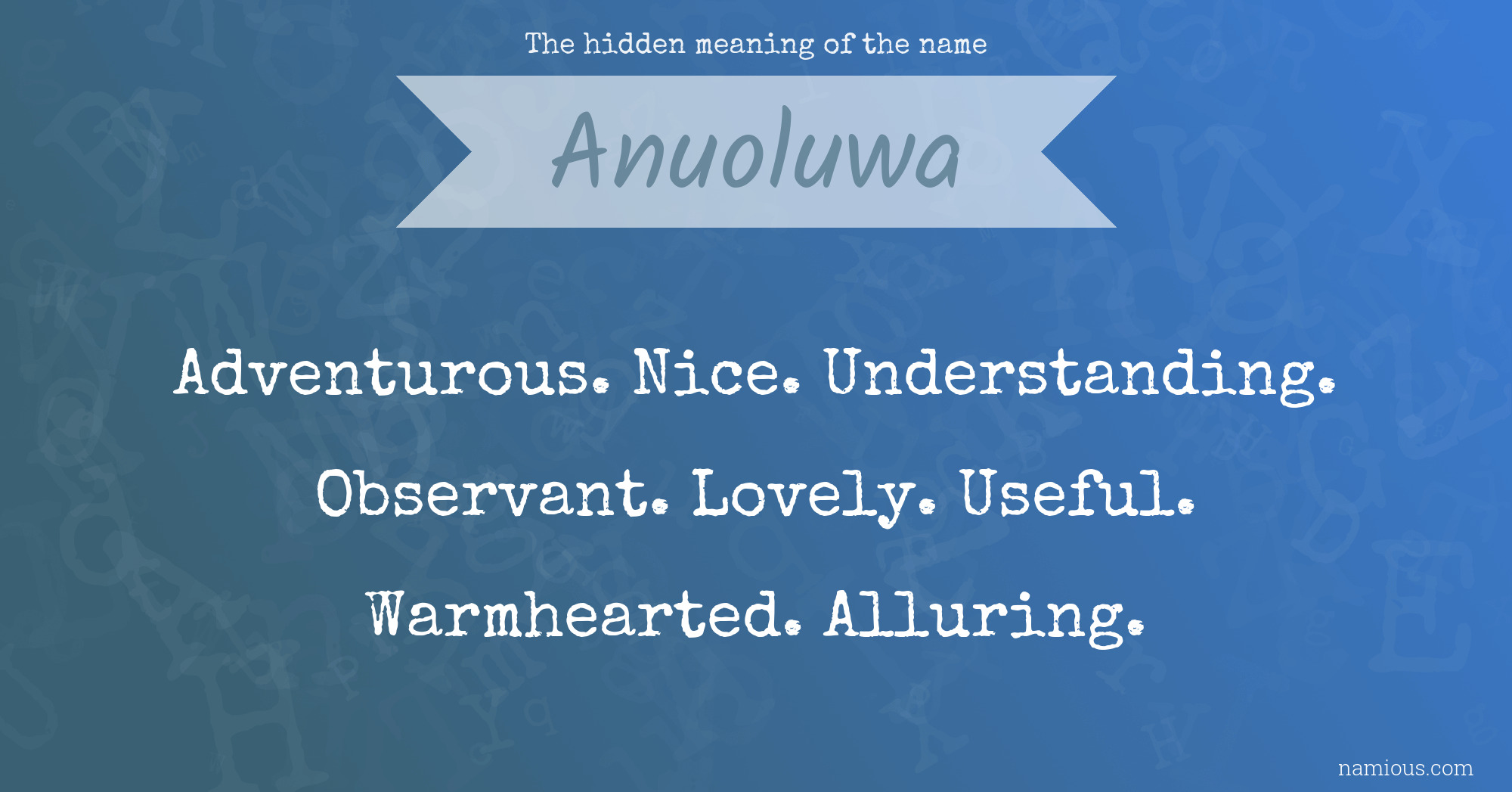 "Anuoluwa is an adventurous, nice, understanding, observant, lovely, useful, warmhearted and alluring person."