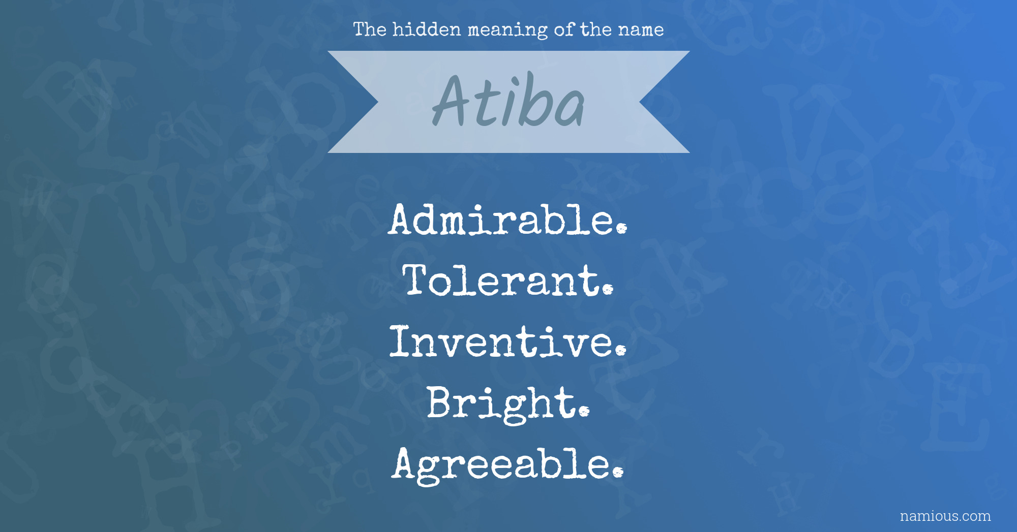 "Atiba is an admirable, tolerant, inventive, bright and agreeable person."