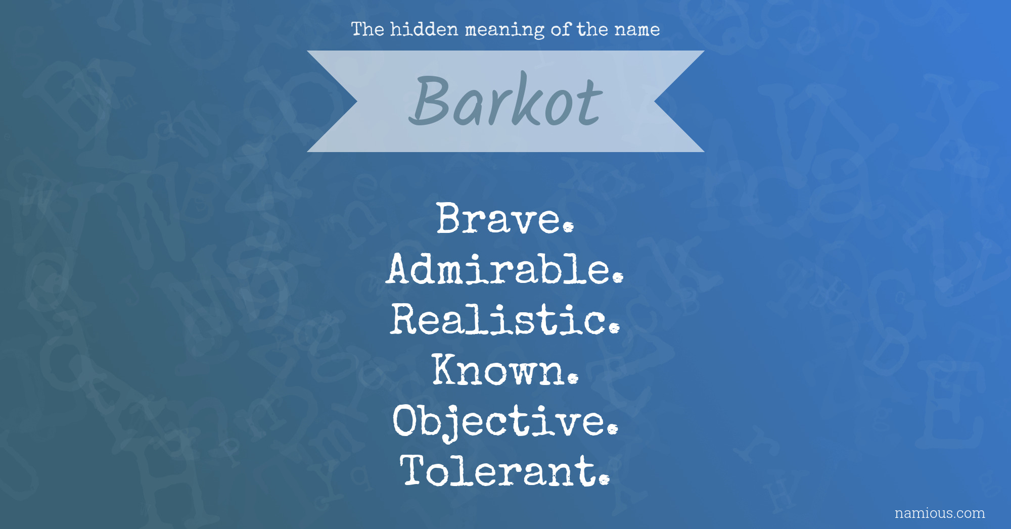 "Barkot is a brave, admirable, realistic, known, objective and tolerant person."