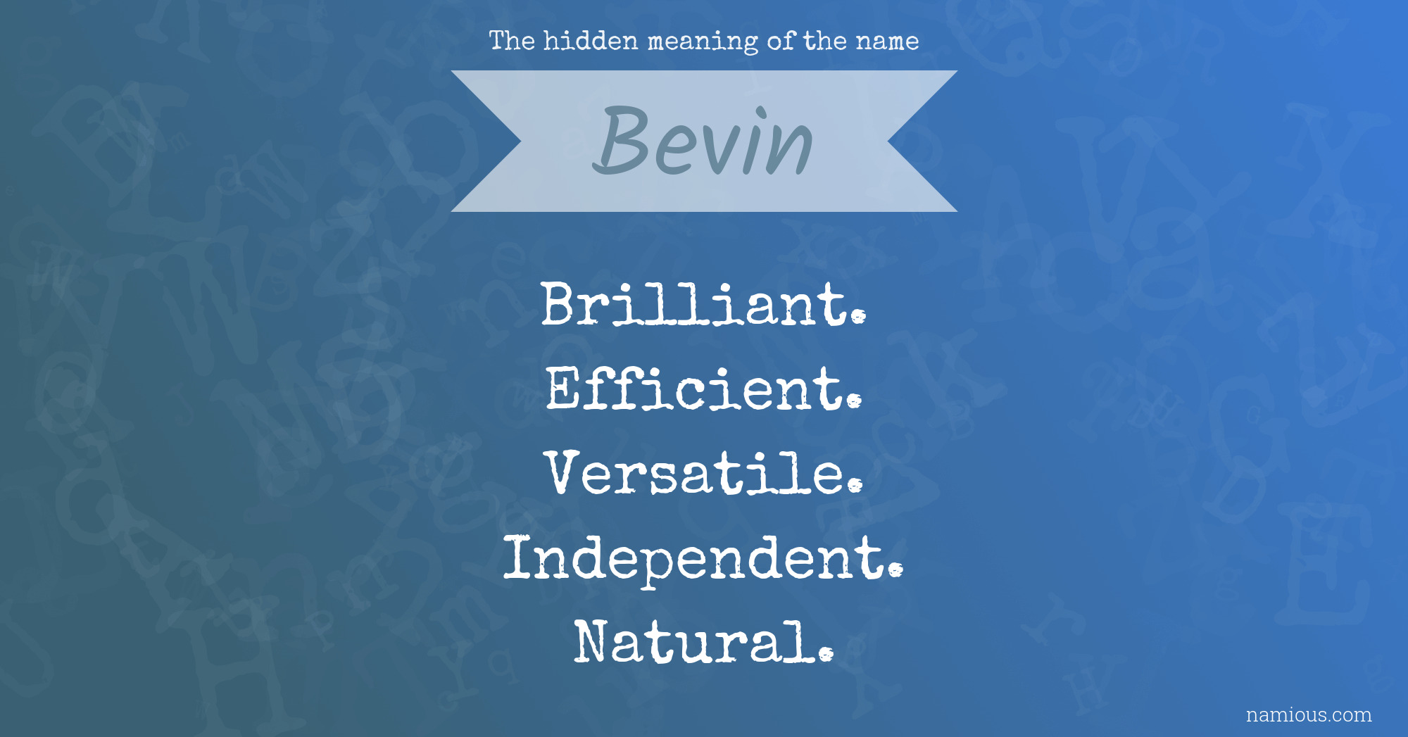 "Bevin is a brilliant, efficient, versatile, independent and natural person."