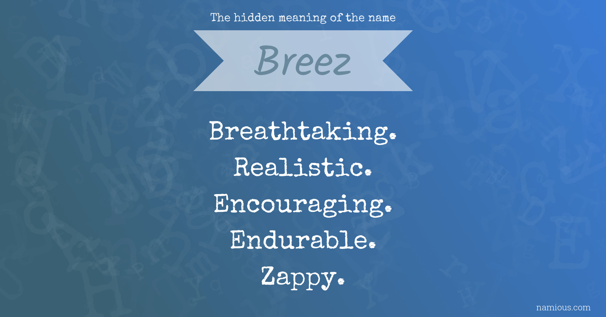 "Breez is a breathtaking, realistic, encouraging, endurable and zappy person."
