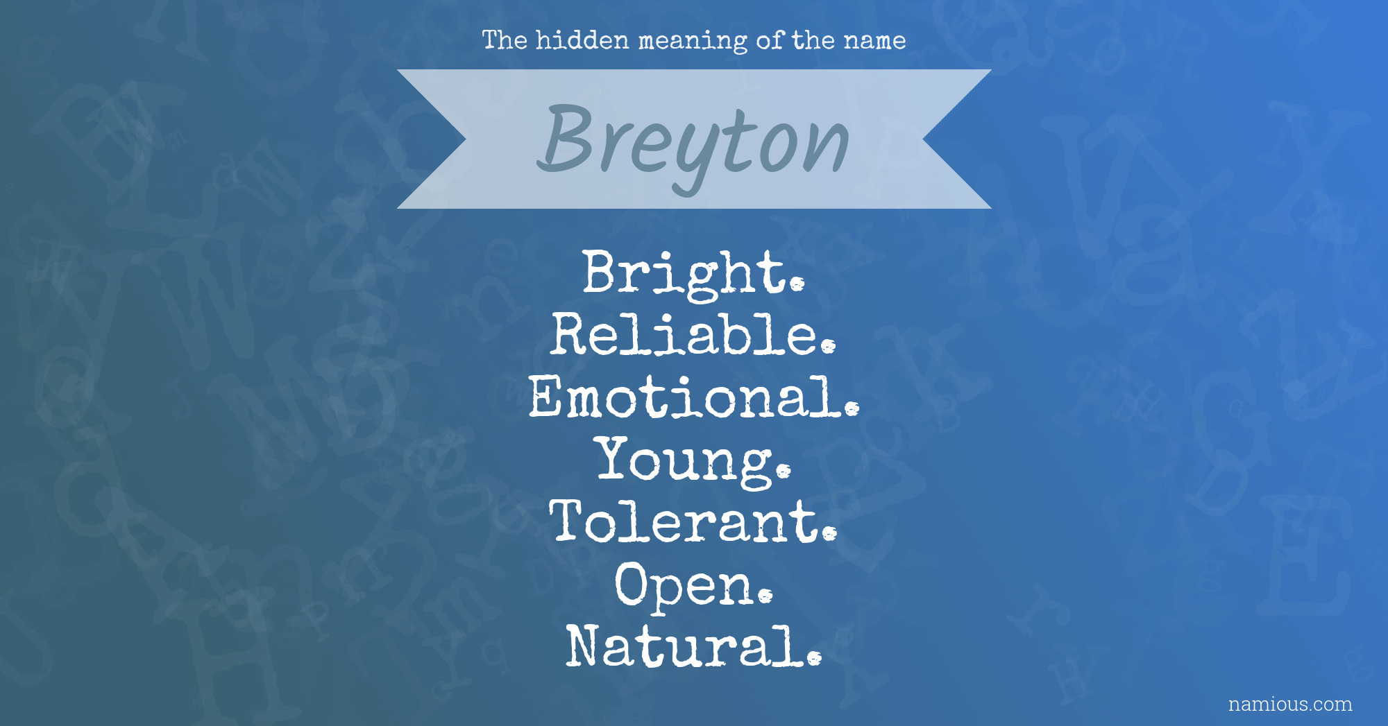 "Breyton is a bright, reliable, emotional, young, tolerant, open and natural person."