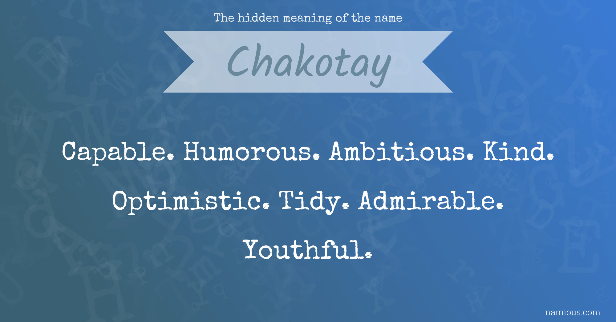 "Chakotay is a capable, humorous, ambitious, kind, optimistic, tidy, admirable and youthful person."