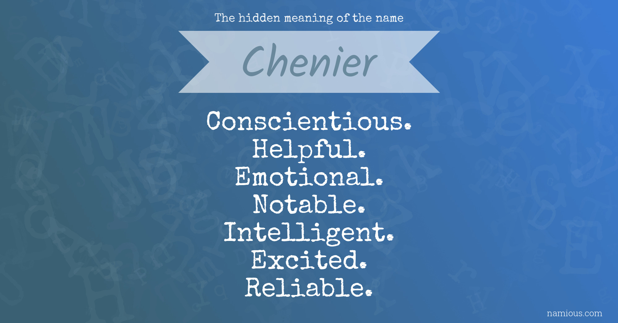 "Chenier is a conscientious, helpful, emotional, notable, intelligent, excited and reliable person."