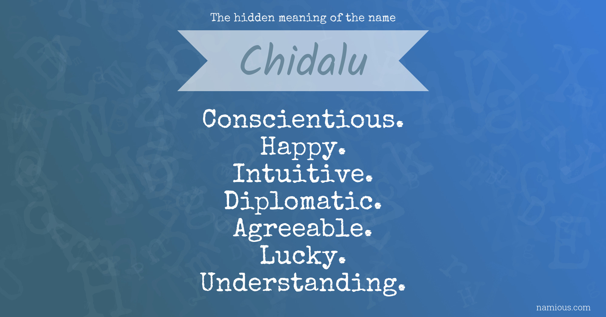 "Chidalu is a conscientious, happy, intuitive, diplomatic, agreeable, lucky and understanding person."