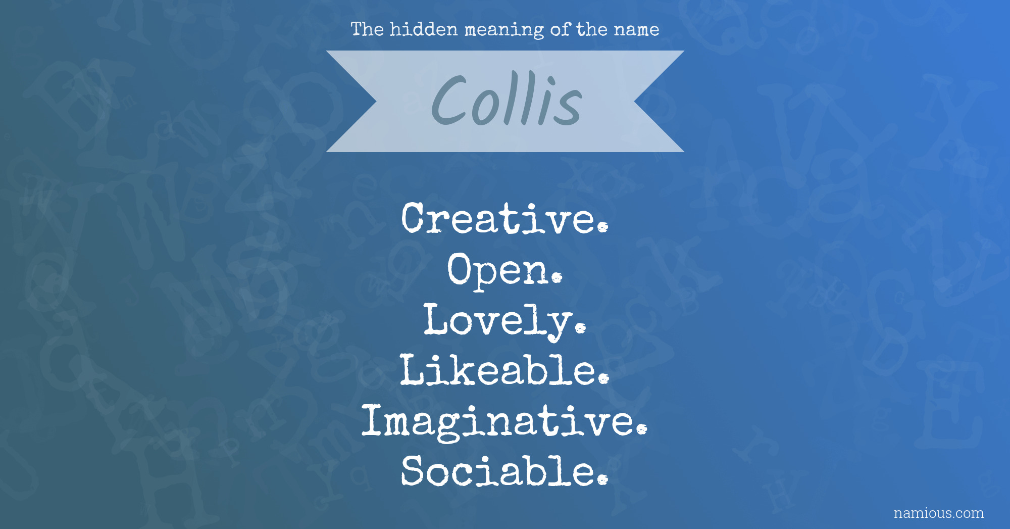 "Collis is a creative, open, lovely, likeable, imaginative and sociable person."