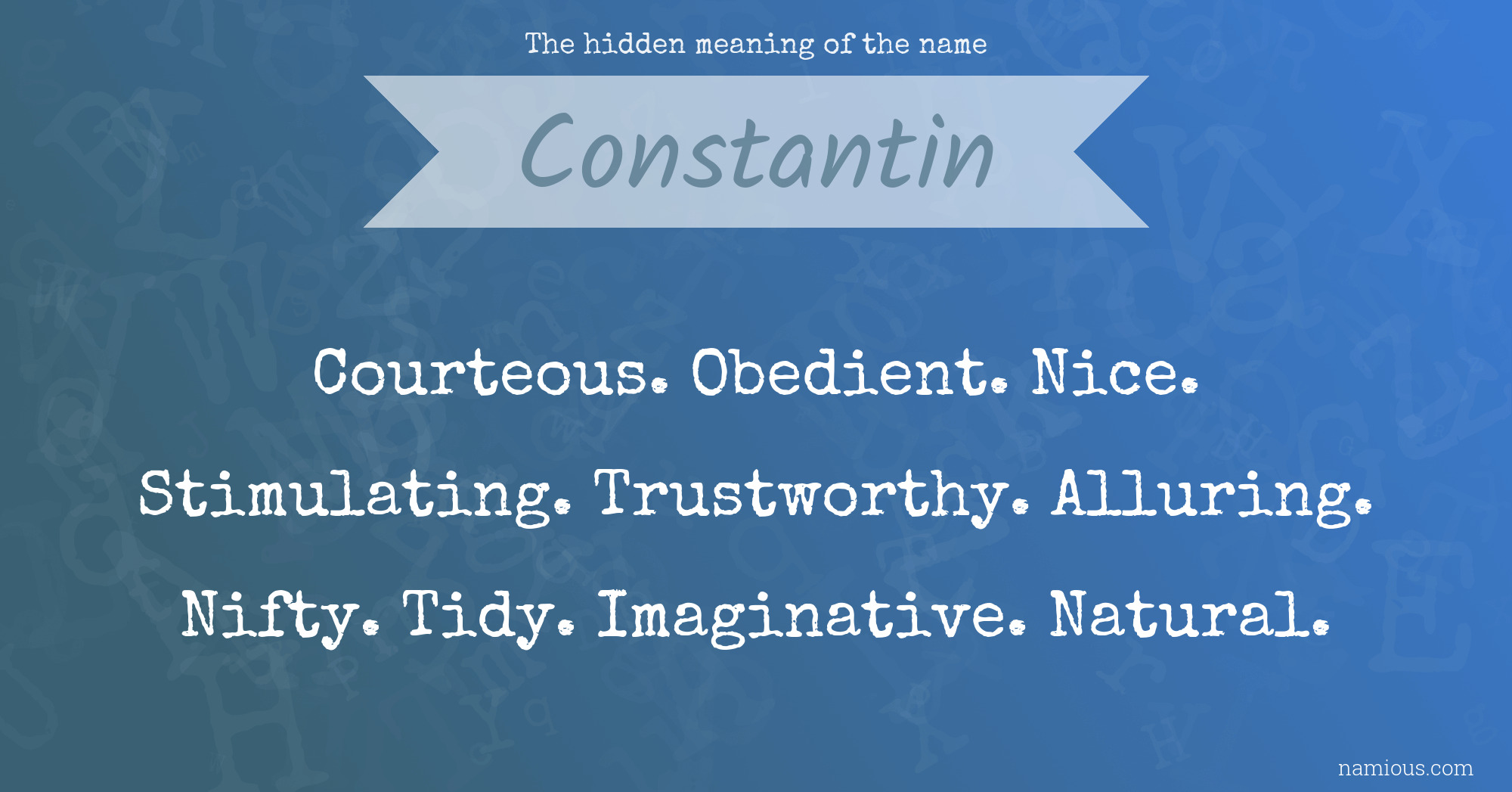 "Constantin is a courteous, obedient, nice, stimulating, trustworthy, alluring, nifty, tidy, imaginative and natural person."