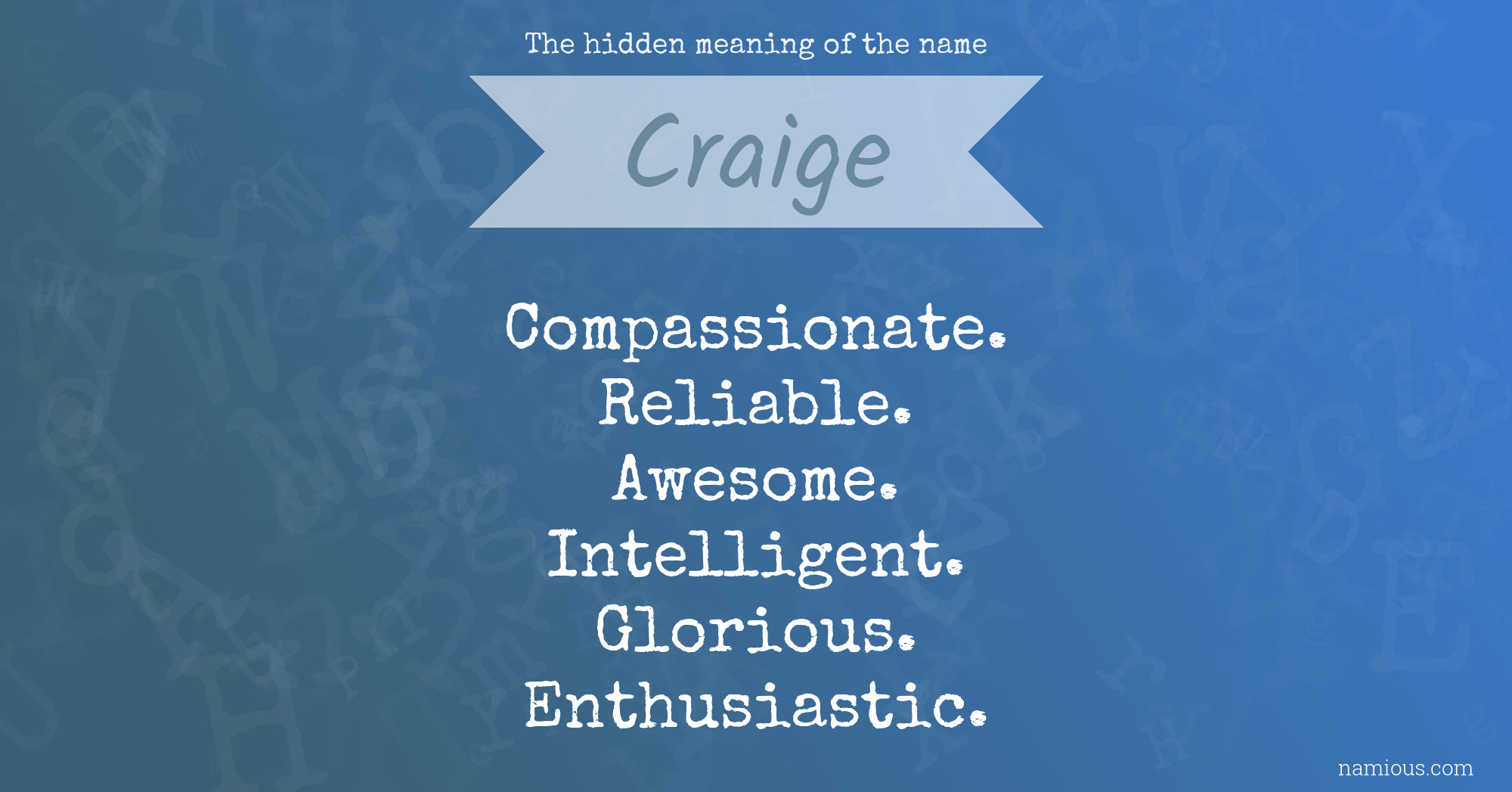 "Craige is a compassionate, reliable, awesome, intelligent, glorious and enthusiastic person."