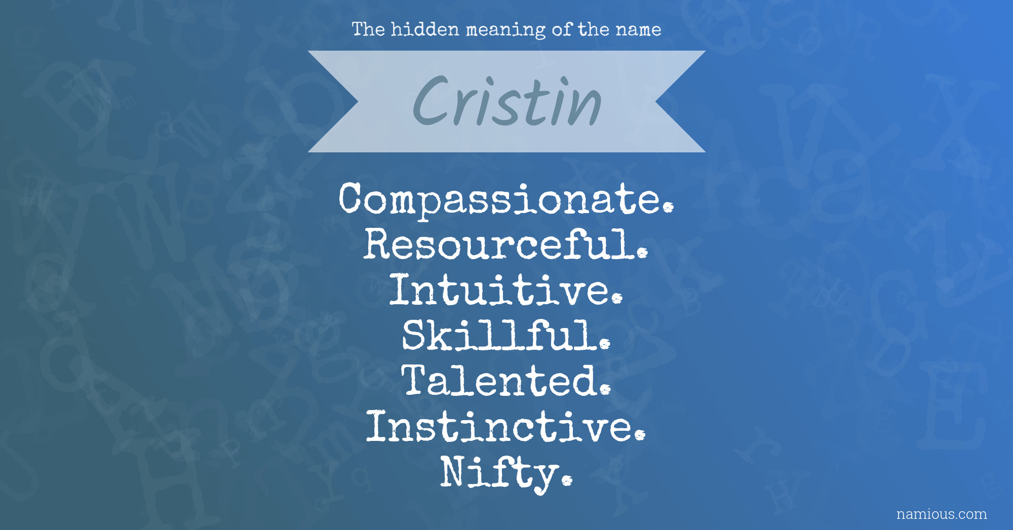 "Cristin is a compassionate, resourceful, intuitive, skillful, talented, instinctive and nifty person."