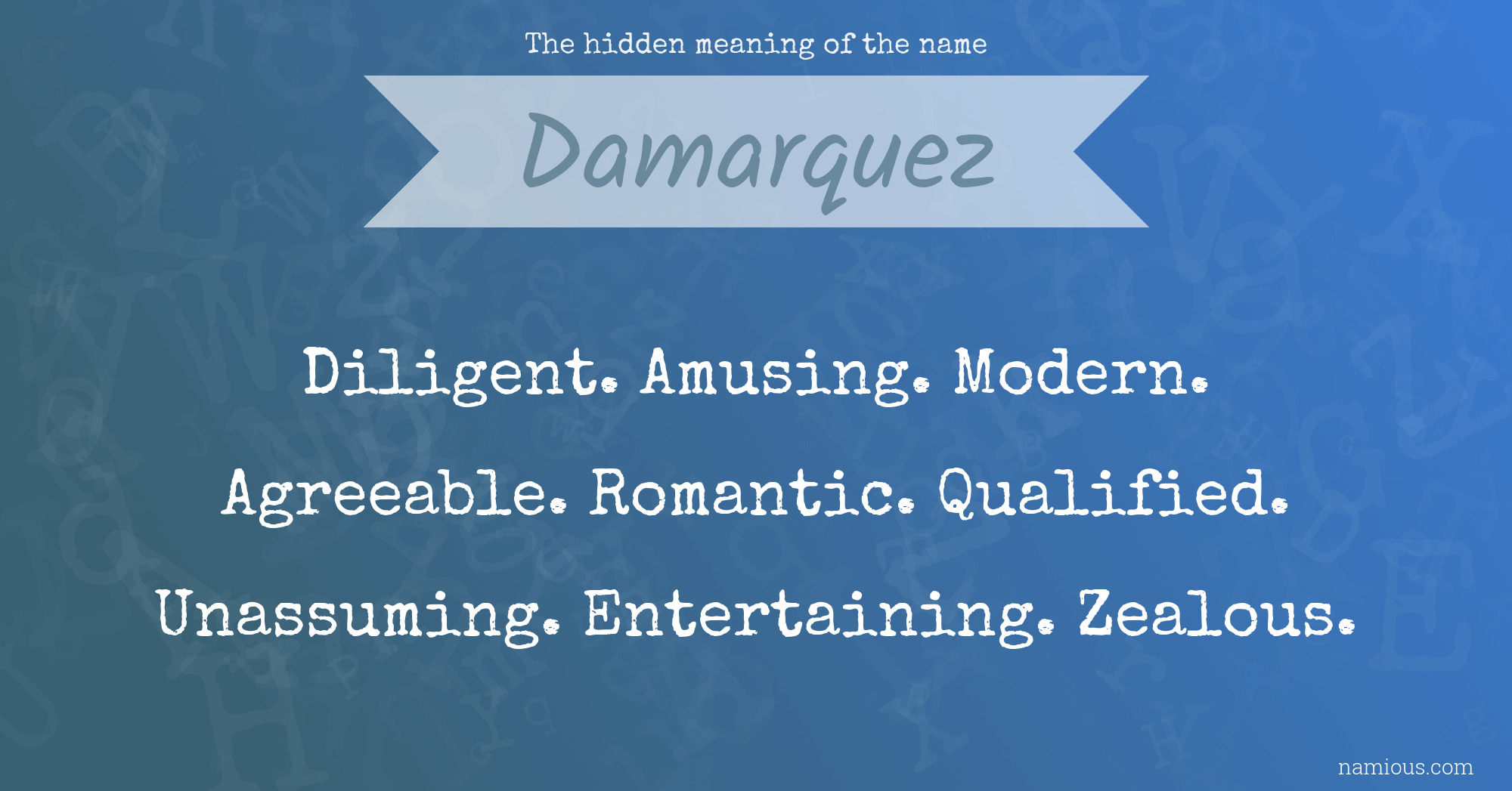 "Damarquez is a diligent, amusing, modern, agreeable, romantic, qualified, unassuming, entertaining and zealous person."