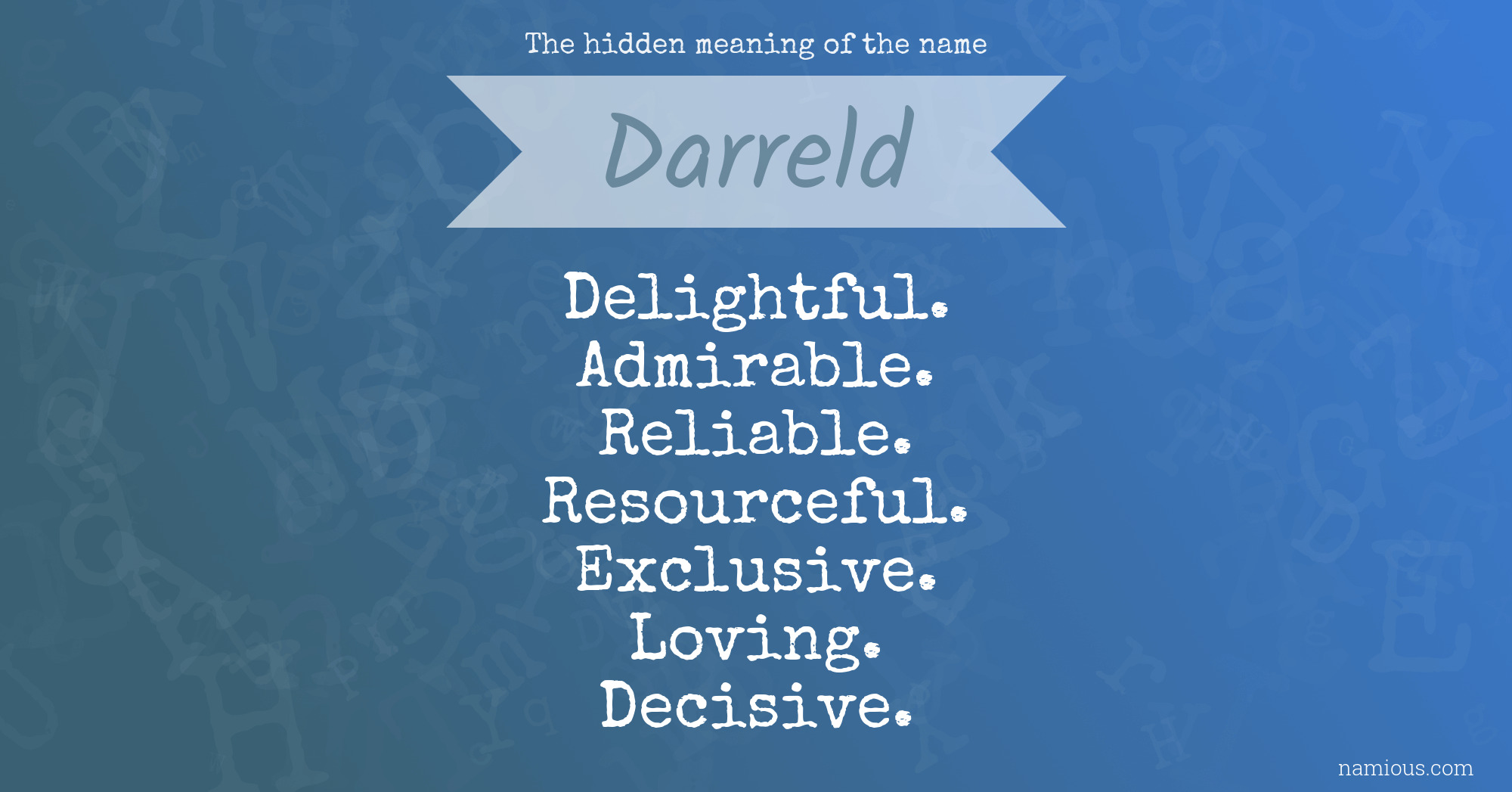 "Darreld is a delightful, admirable, reliable, resourceful, exclusive, loving and decisive person."